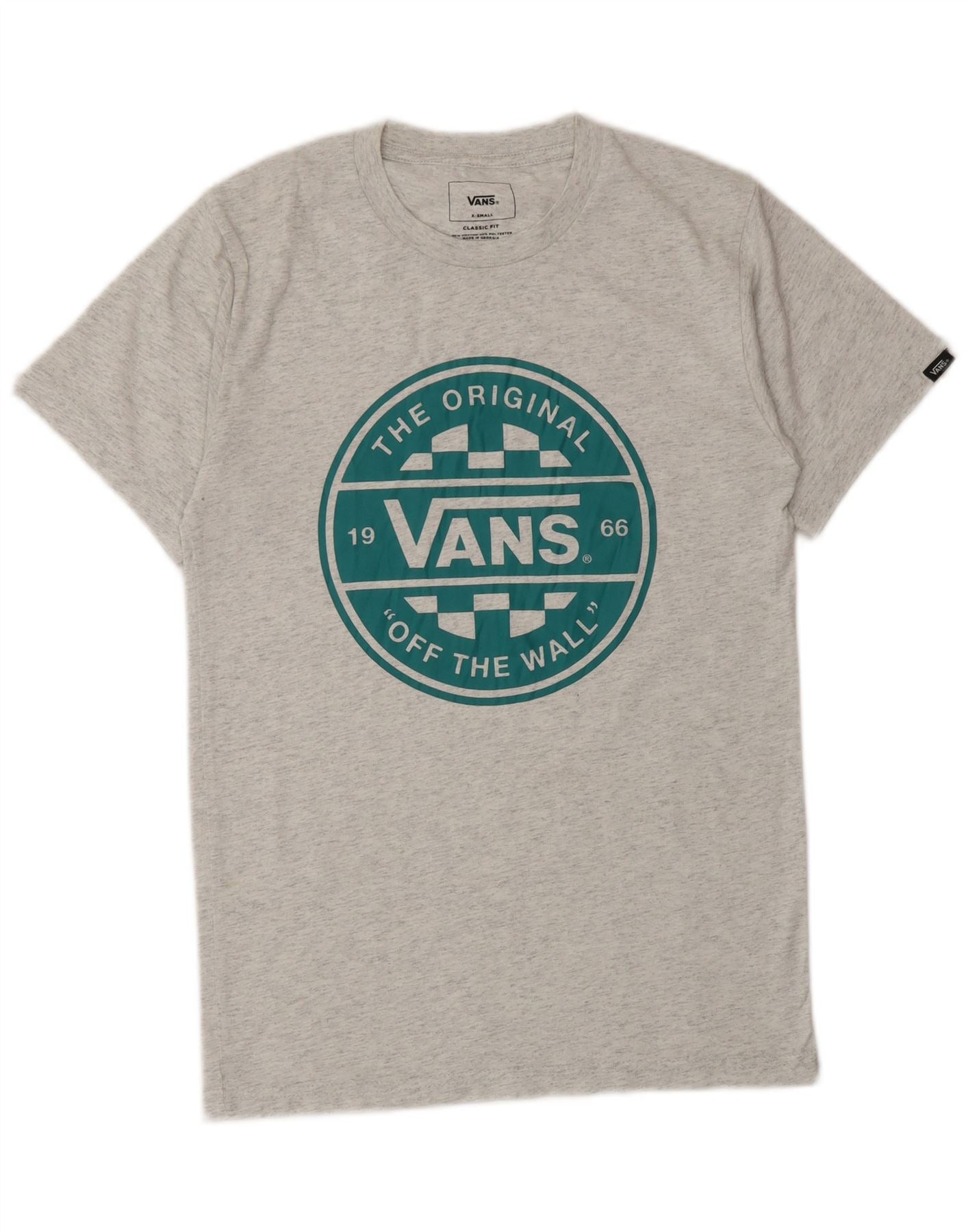 Мужская футболка классического кроя с рисунком VANS, топ XS, серый хлопок с крапинками