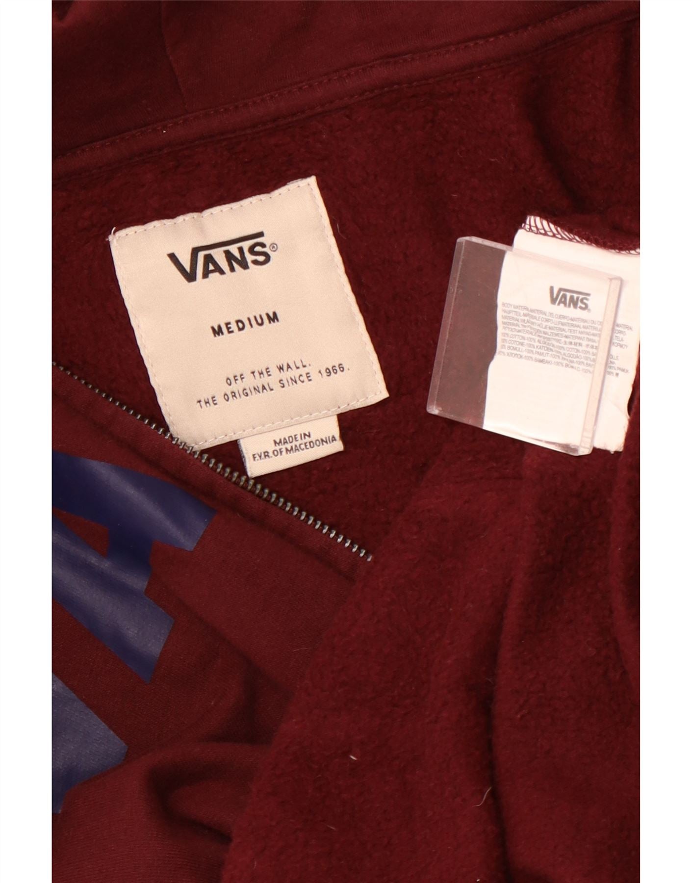 Мужской свитер с капюшоном на молнии с графическим рисунком VANS, средний бордовый хлопок, хлопок
