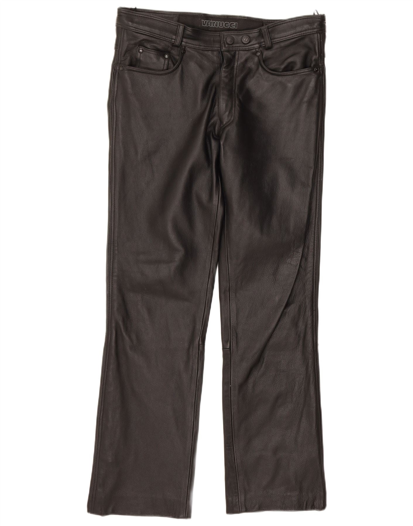 Мужские прямые повседневные брюки Vanucci IT 50, большие W34 L31, черные кожаные
