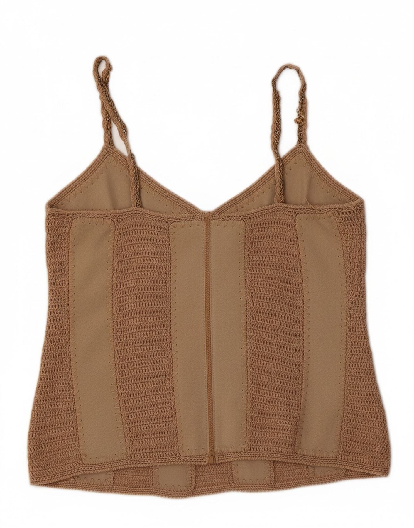 VERO MODA Womens Crop Suede Cami Top UK 14 Large Beige Leather