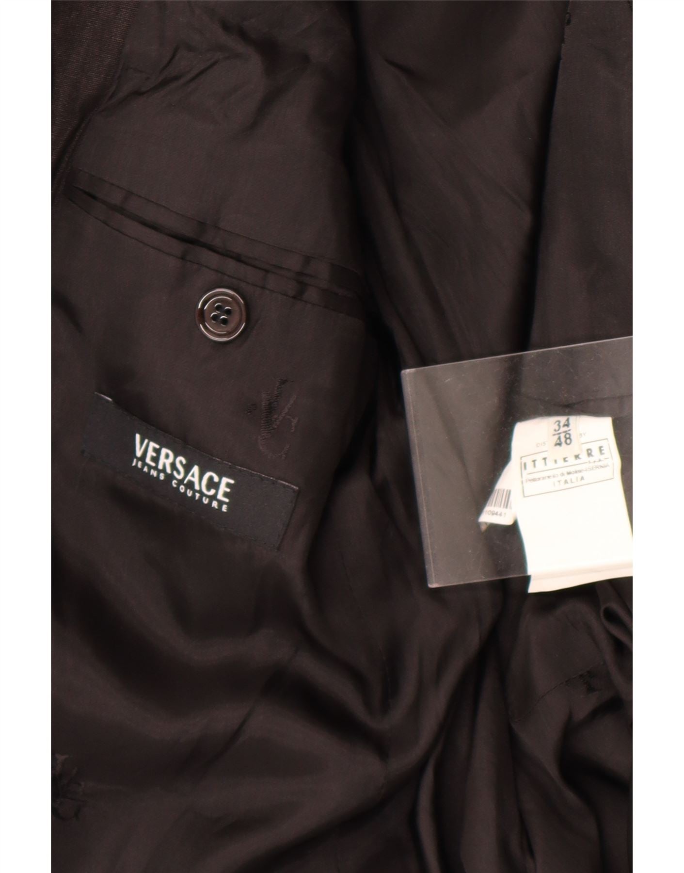 - Описание ИИ: Мужской костюм-двойка Versace выполнен из изысканной черной ткани. Куртка имеет классический вырез горловины и застежку на две пуговицы спереди. Длинные рукава заканчиваются манжетами на пуговицах. Он предлагает стандартную посадку для комфортного ношения. Полностью на подкладке, с практичными карманами. Дизайн выполнен в неподвластном времени классическом стиле и идеально подходит для официальных случаев.