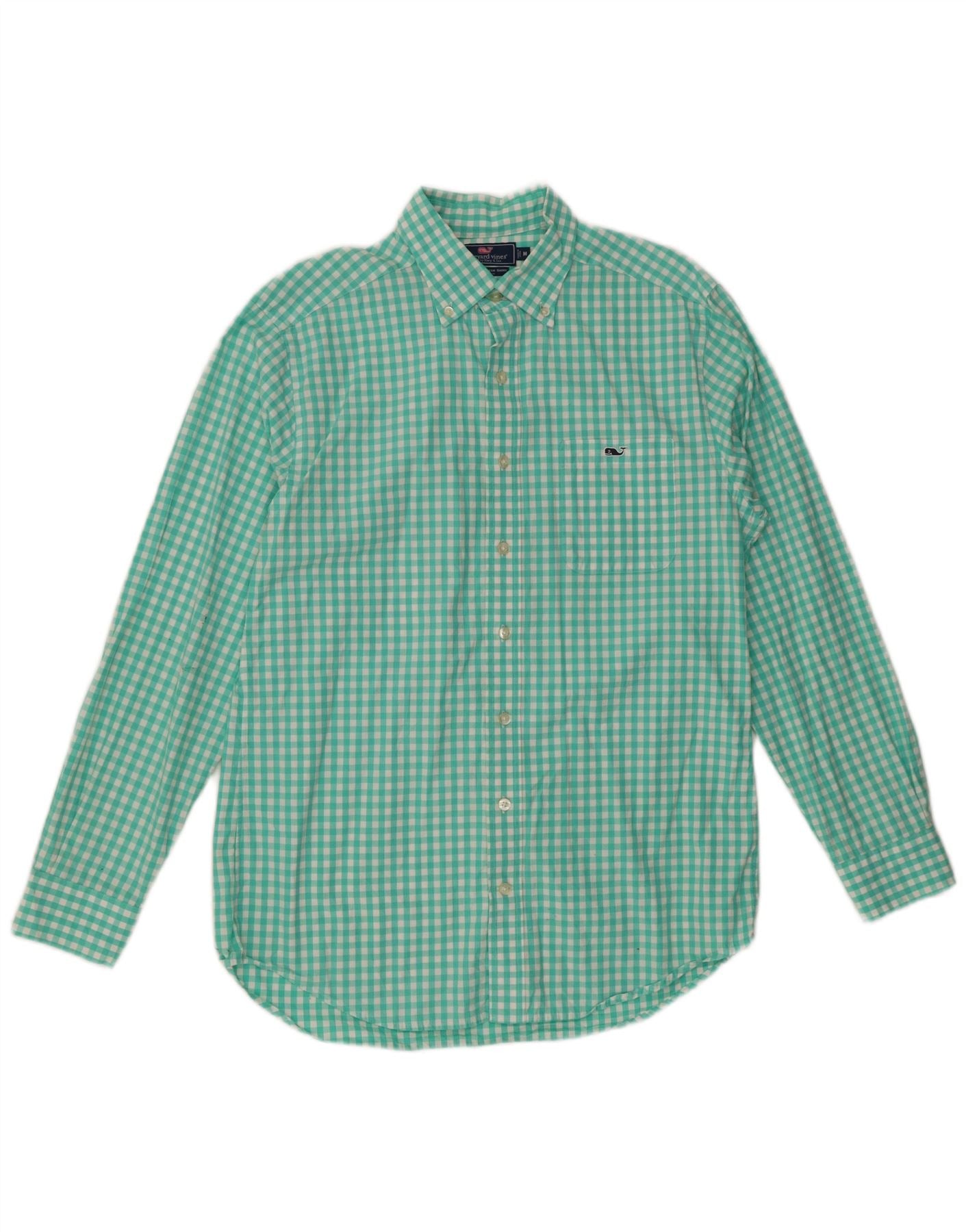 VINEYARD VINES Мужская рубашка приталенного кроя среднего размера, бирюзовая, в мелкую клетку, хлопок