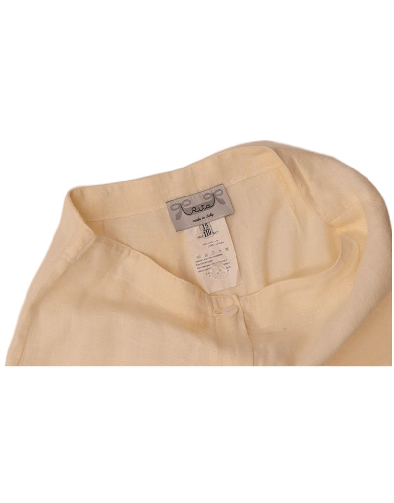 VINTAGE Girls Loose Fit Capri Trousers 14-15 Years W28 L21 Beige Linen