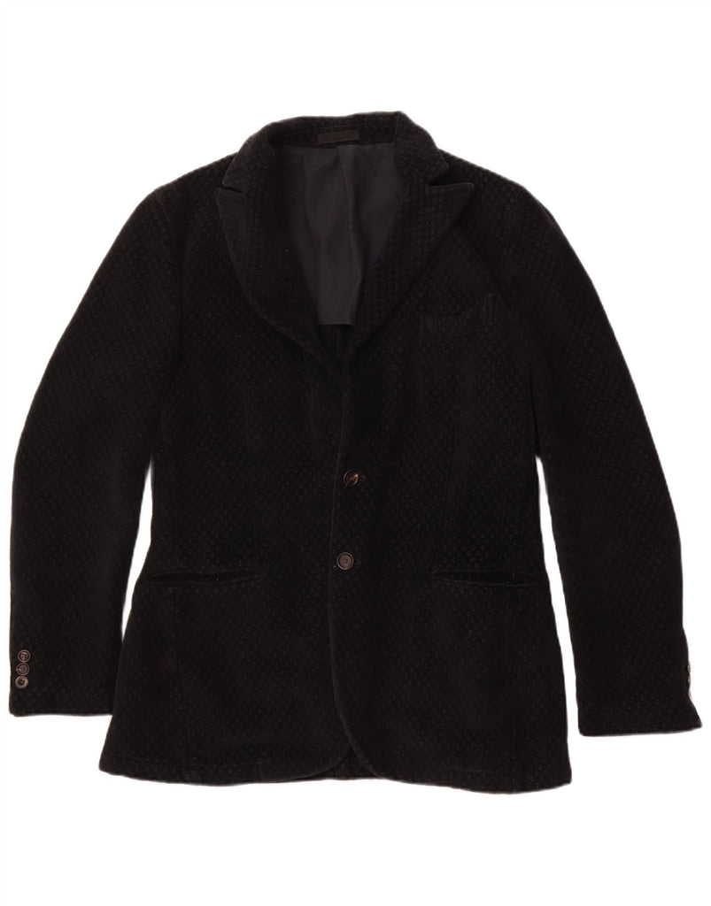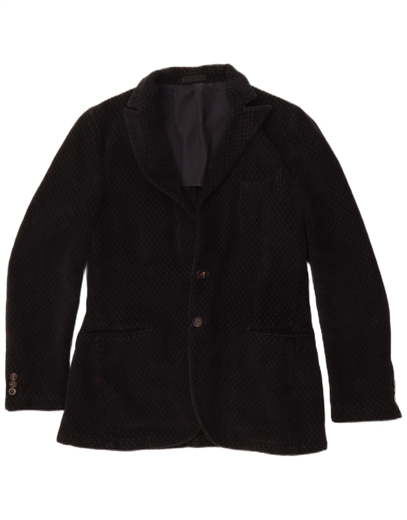 ВИНТАЖНЫЙ Мужской пиджак на 2 пуговицах IT 50, большой темно-синий, хлопок с геометрическим узором