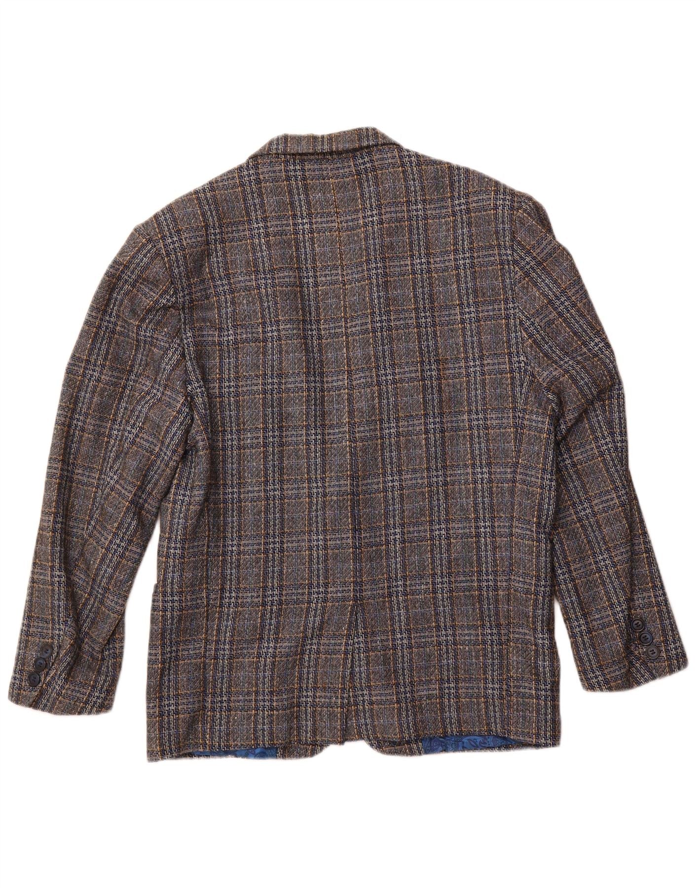 Винтажный мужской пиджак на 2 пуговицах (Великобритания 38), шерстяная клетка в среднюю серую клетку