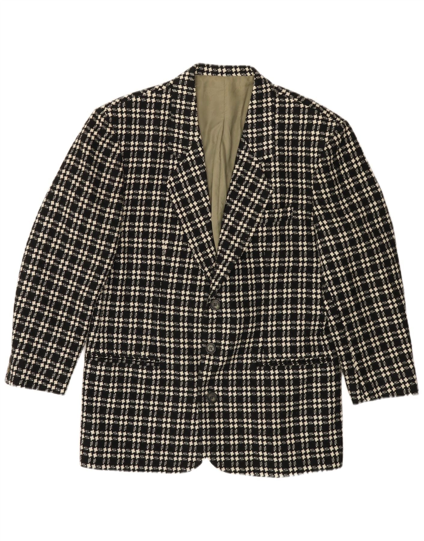 ВИНТАЖНЫЙ Мужской пиджак на 3 пуговицах IT 48, средний черный, шерсть с узором «гусиные лапки»