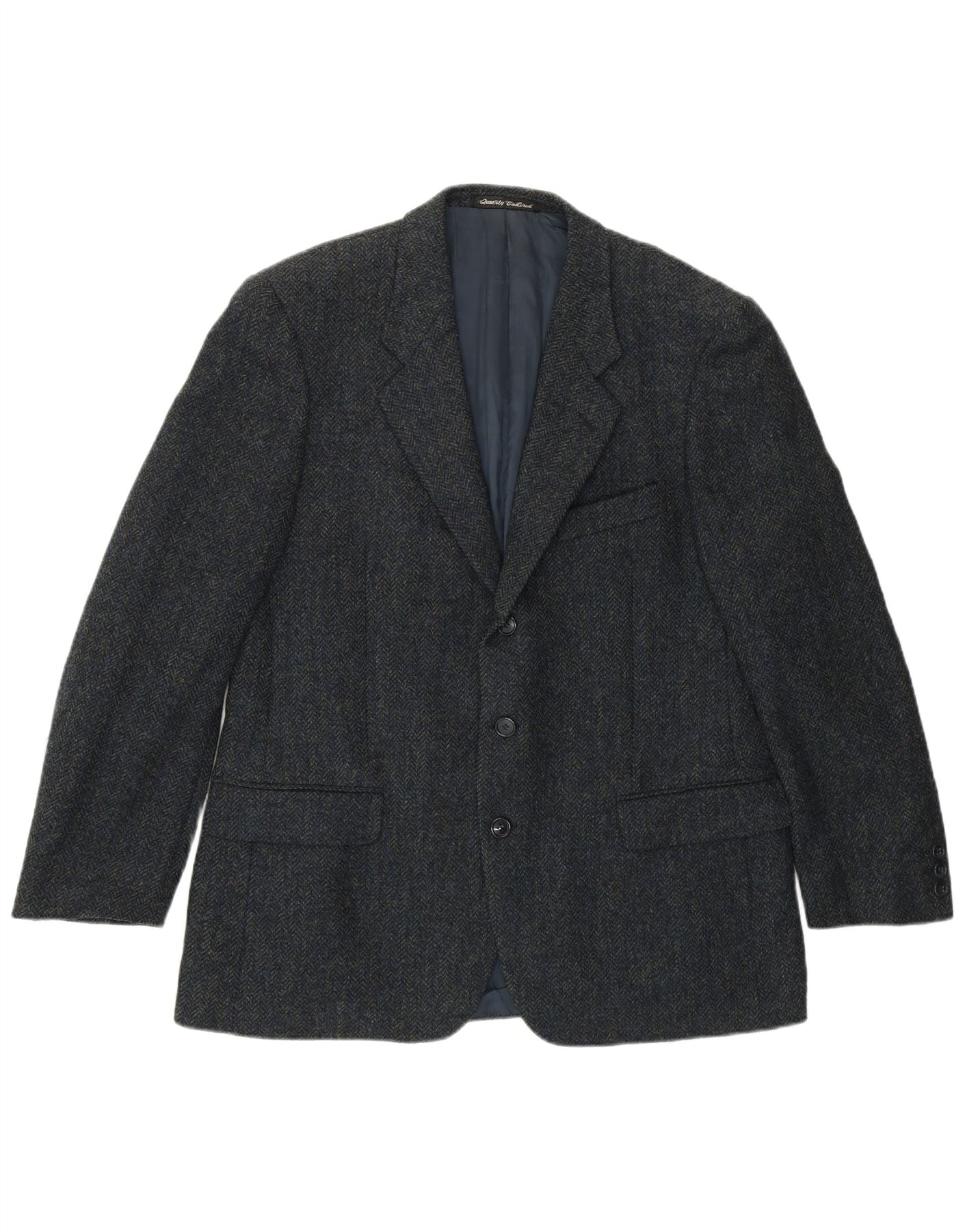 Мужской пиджак VINTAGE на 3 пуговицах IT 50, большой темно-синий с узором «в елочку»