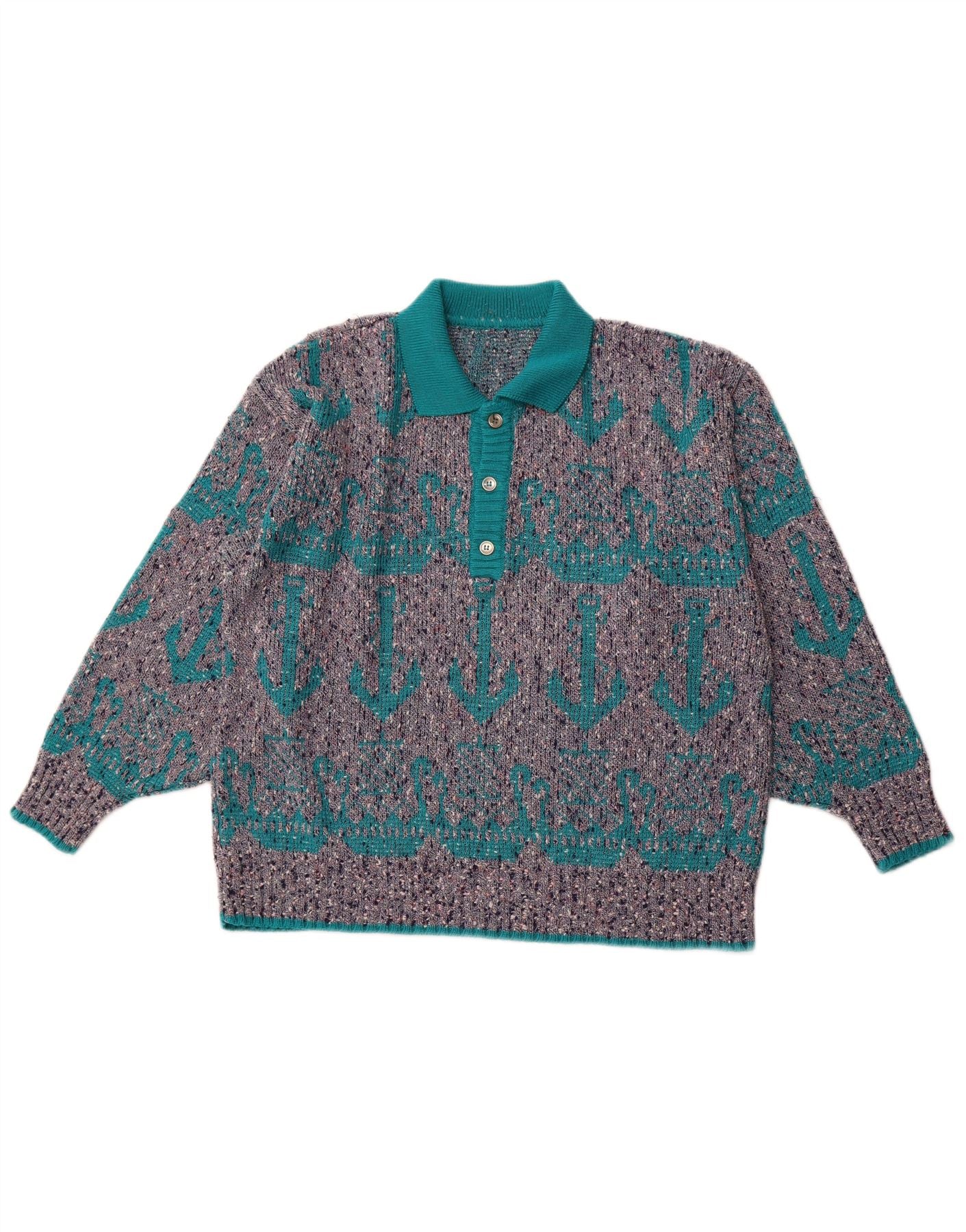 ВИНТАЖНЫЙ мужской джемпер с воротником-поло с абстрактным узором, свитер XL, серый