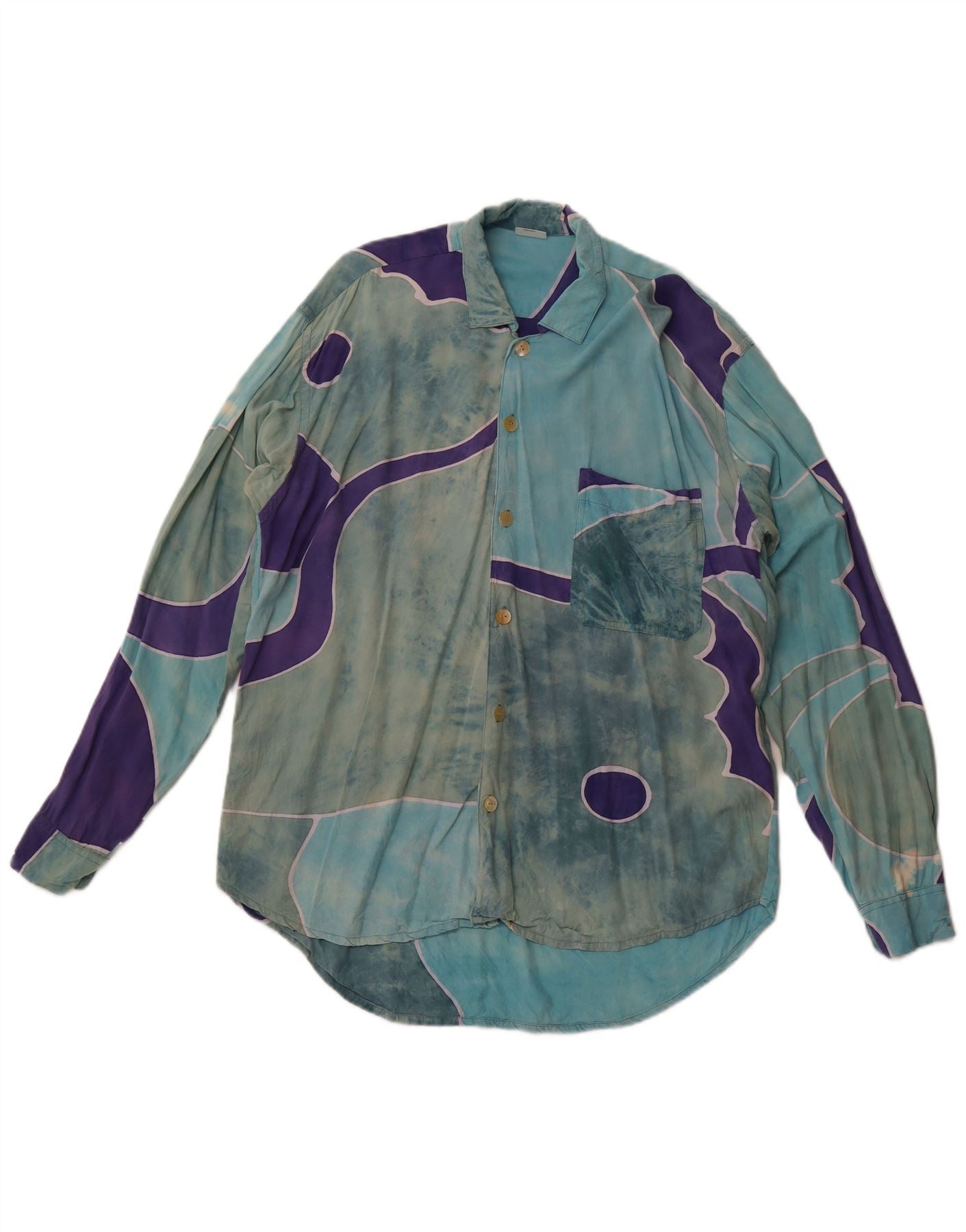 VINTAGE Мужская рубашка с абстрактным узором XL, синяя вискоза