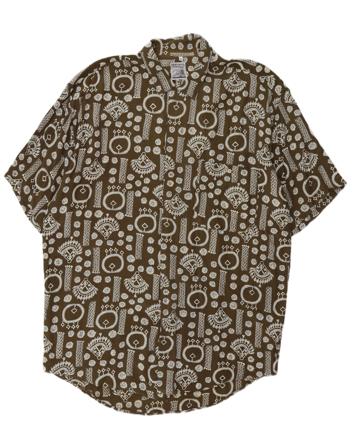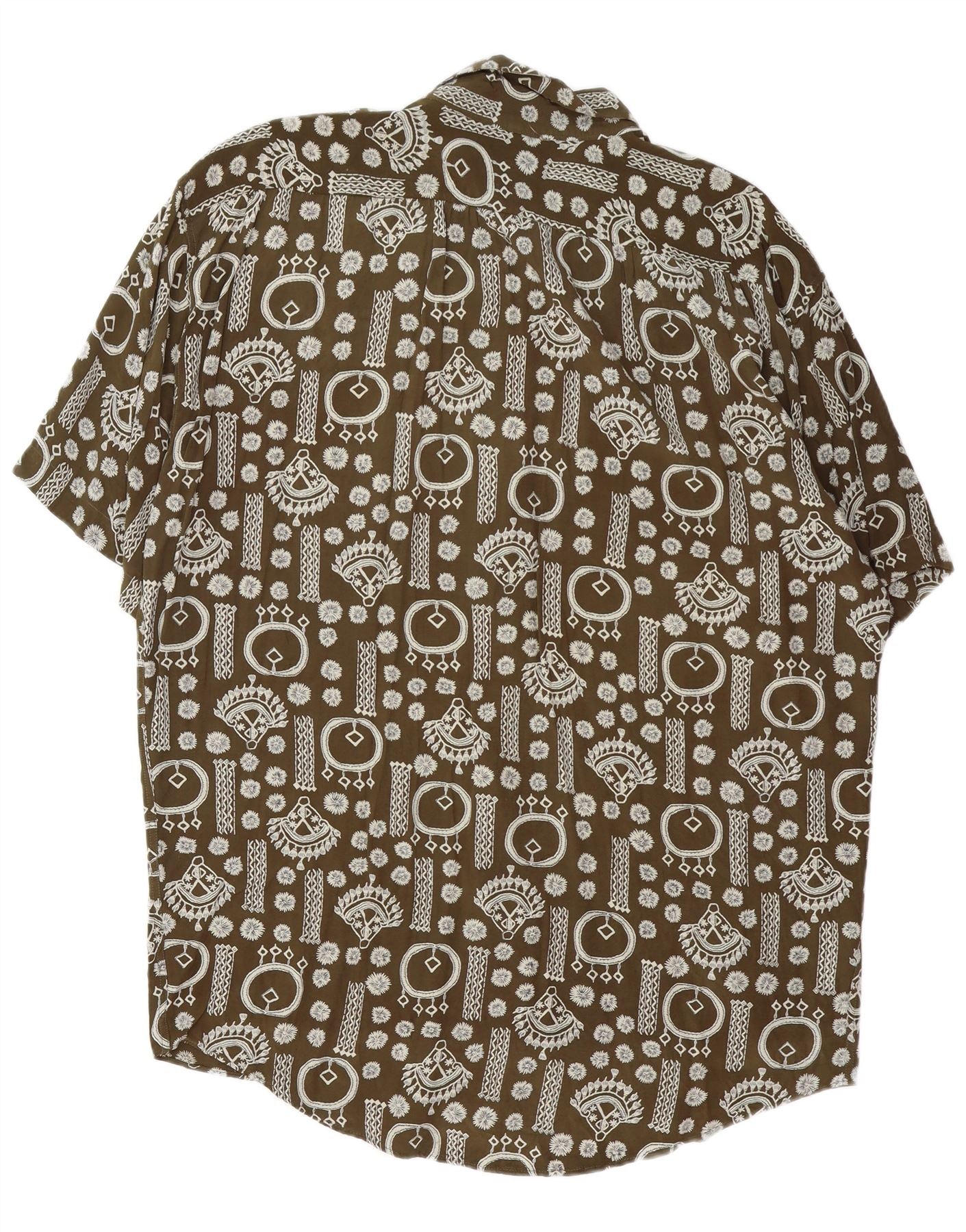 Винтажная мужская рубашка с коротким рукавом с абстрактным узором XL, хаки