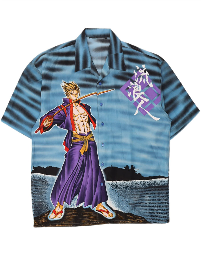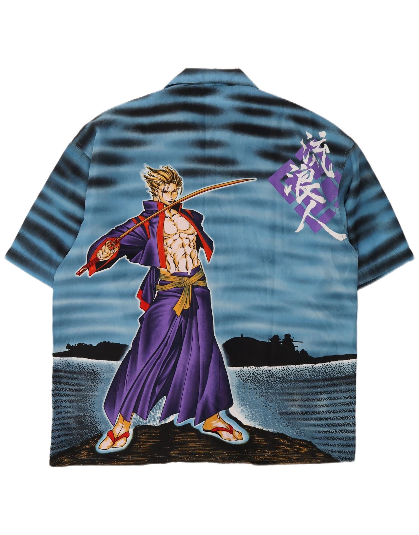 ВИНТАЖНАЯ Мужская рубашка с коротким рукавом в стиле аниме «Самурай», большая синяя