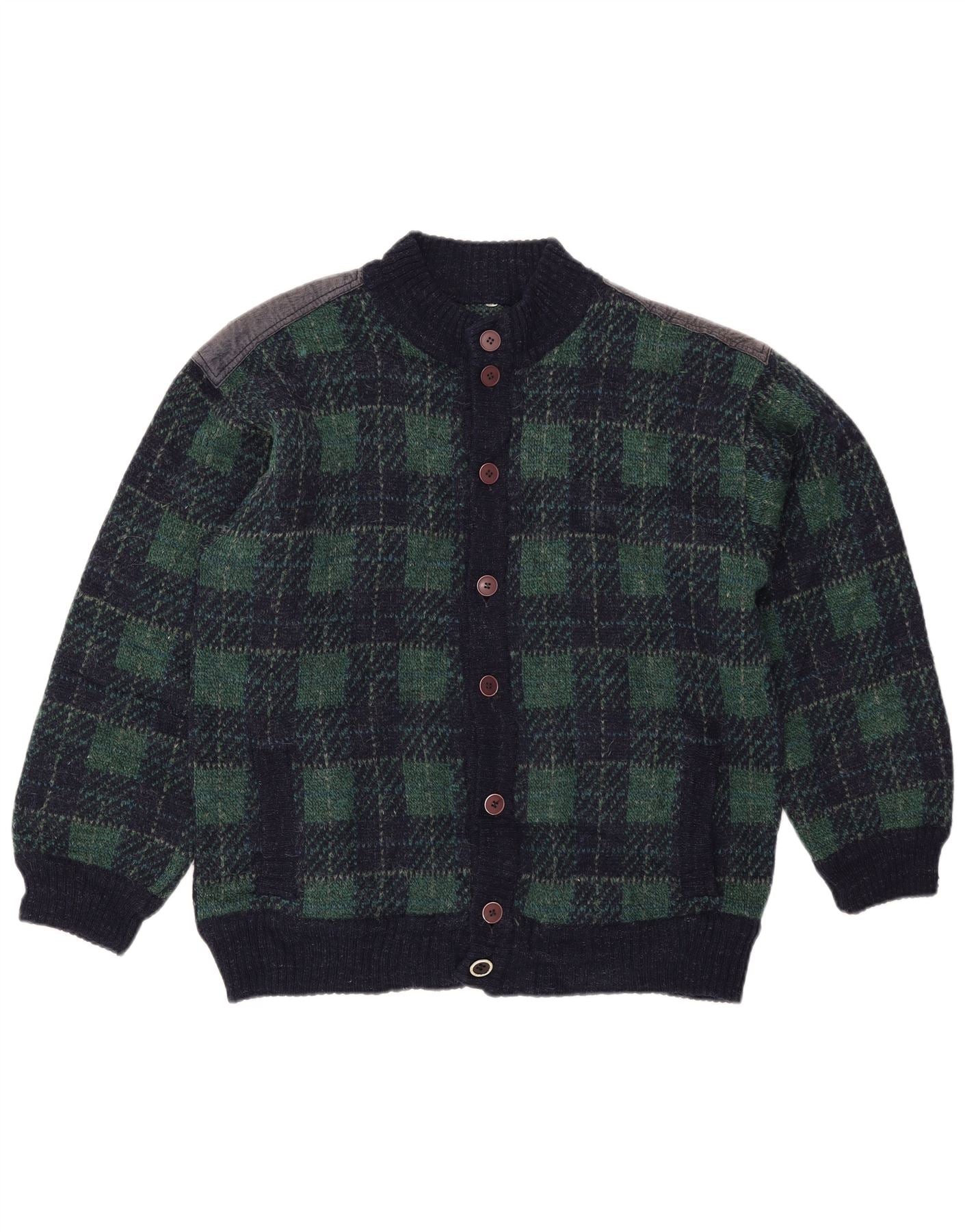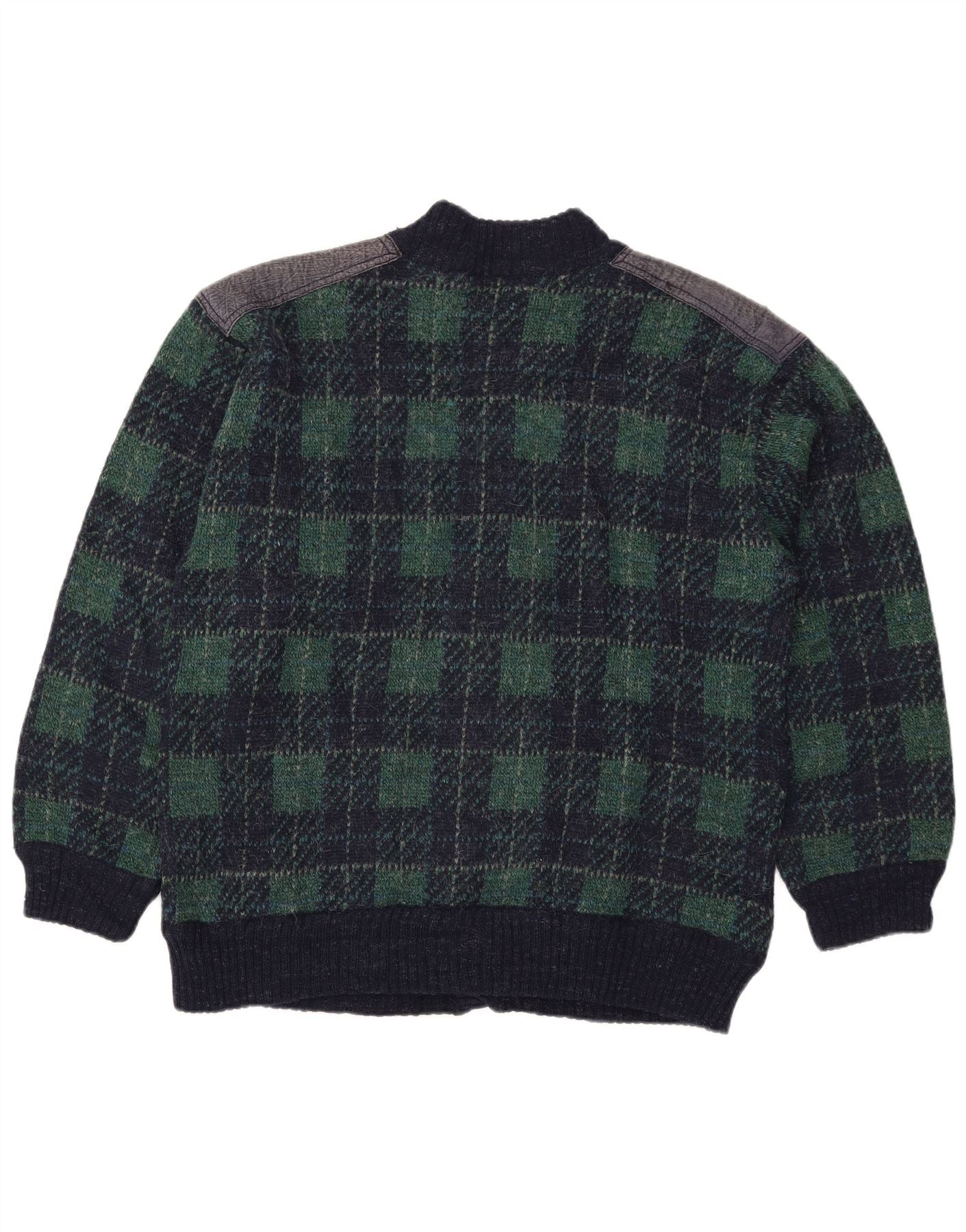 Винтажный мужской свитер-кардиган IT 54 XL темно-синий в клетку, шерсть