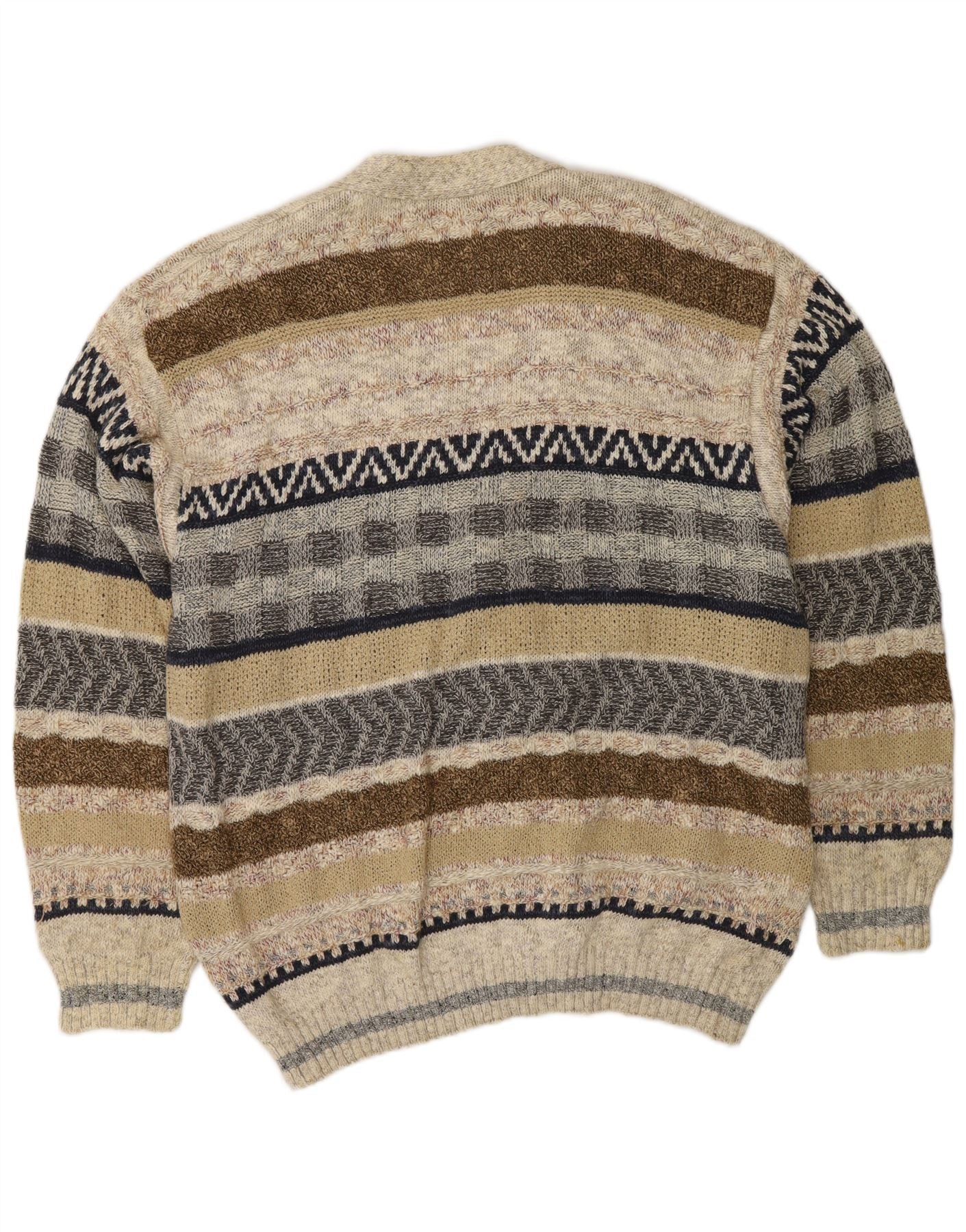 VINTAGE Мужской кардиган-свитер в большую бежевую полоску