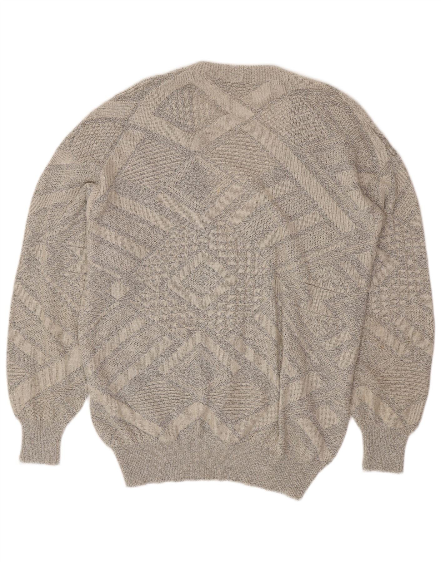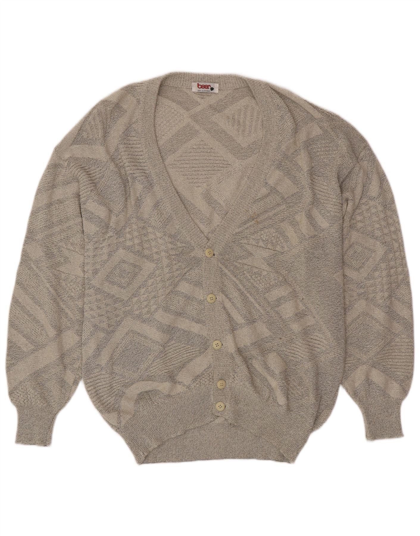 ВИНТАЖНЫЙ мужской кардиган-свитер, большой серый хлопок с геометрическим узором