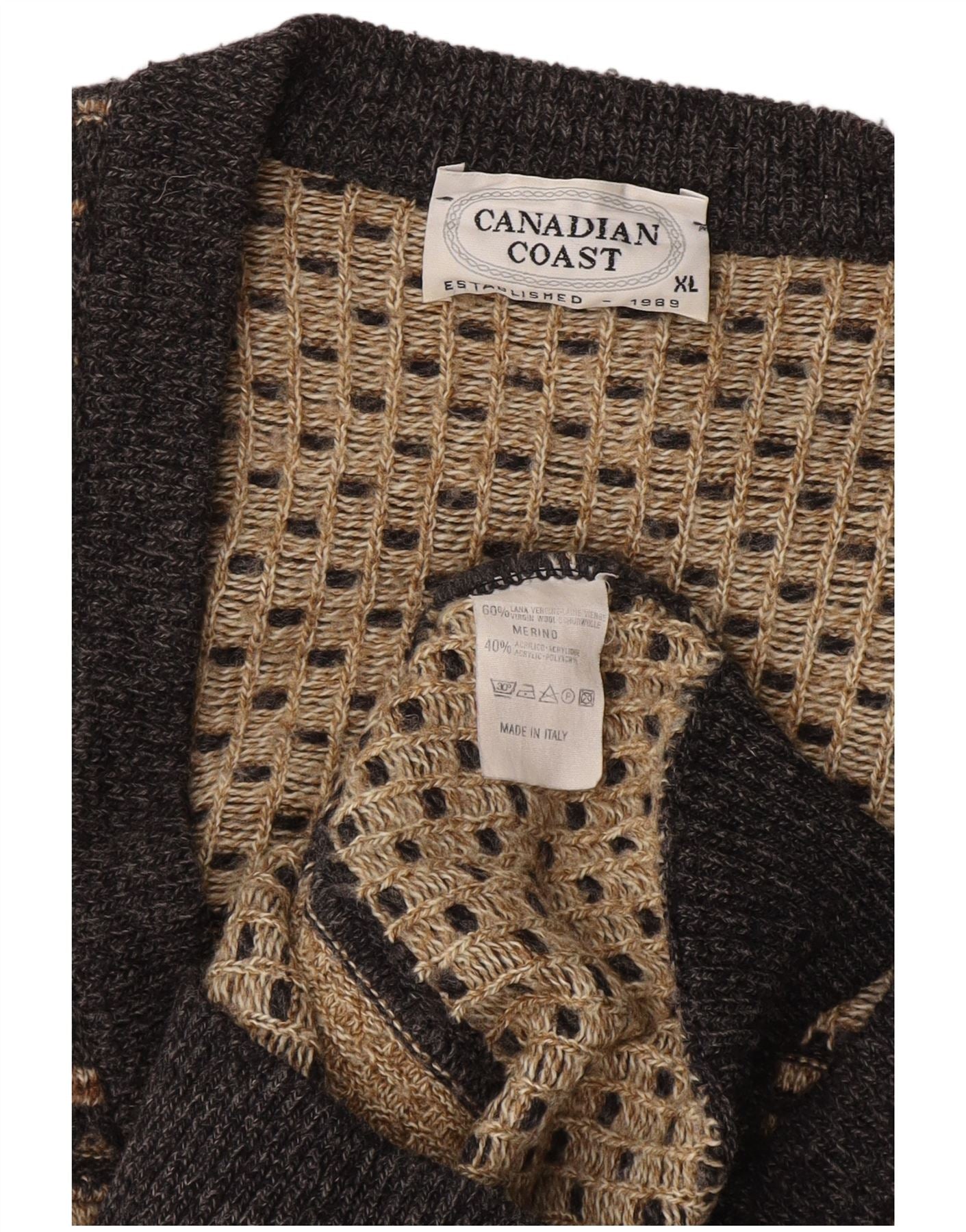 VINTAGE Мужской кардиган-свитер XL серого цвета в полоску из шерсти