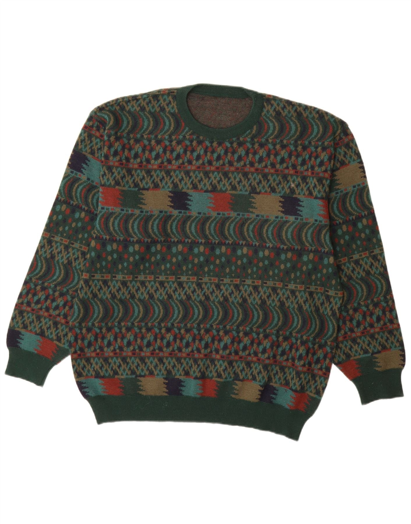 Мужской джемпер с круглым вырезом VINTAGE IT 54 XL, зеленый шерсть Fair Isle