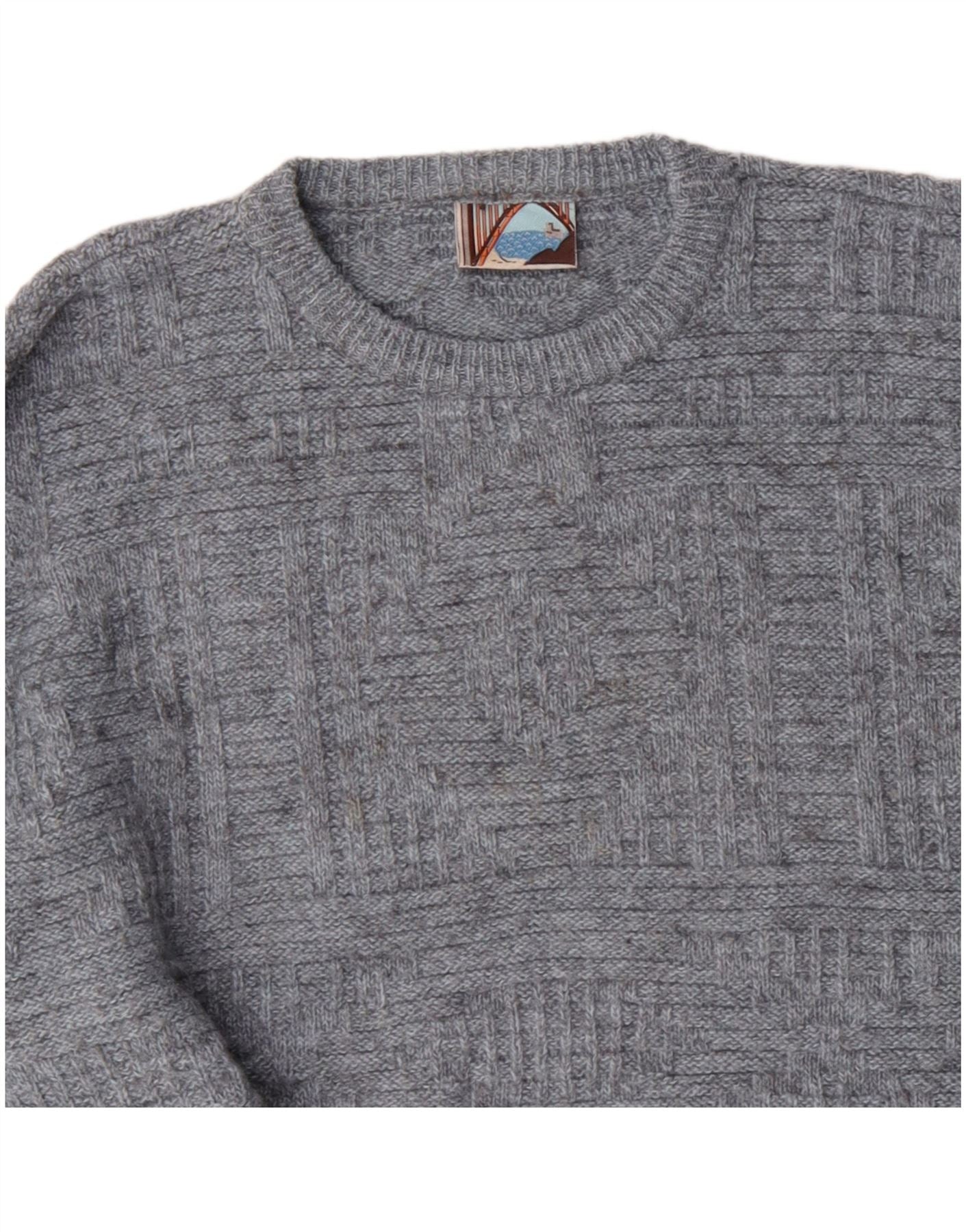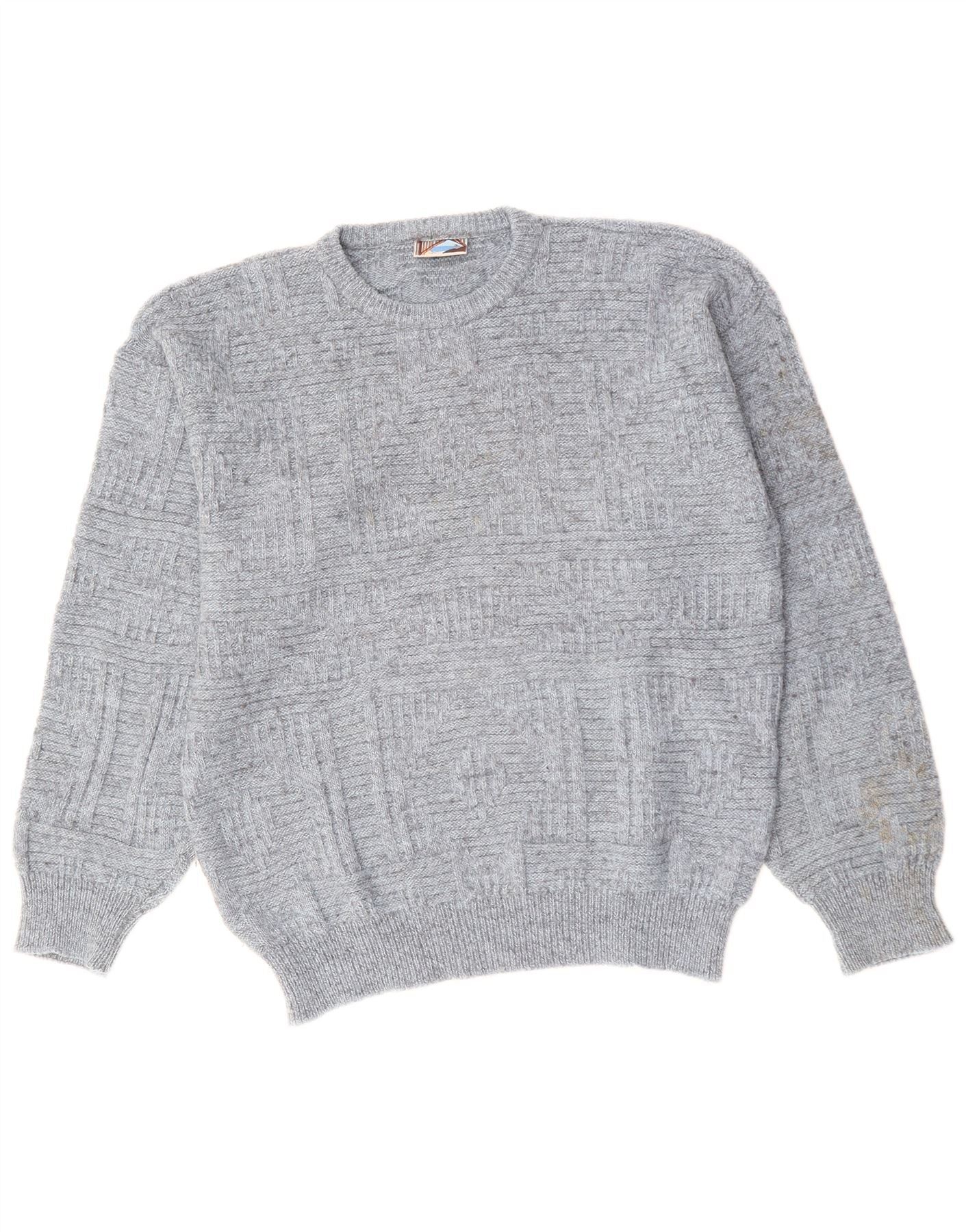 ВИНТАЖНЫЙ мужской свитер с круглым вырезом, большой серый акрил