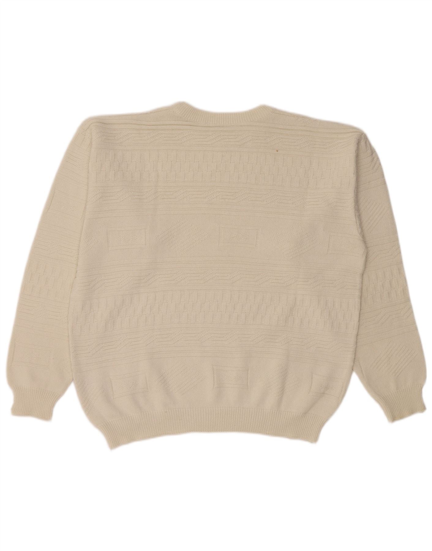 ВИНТАЖНЫЙ мужской джемпер с круглым вырезом, большой белый хлопковый свитер с геометрическим узором