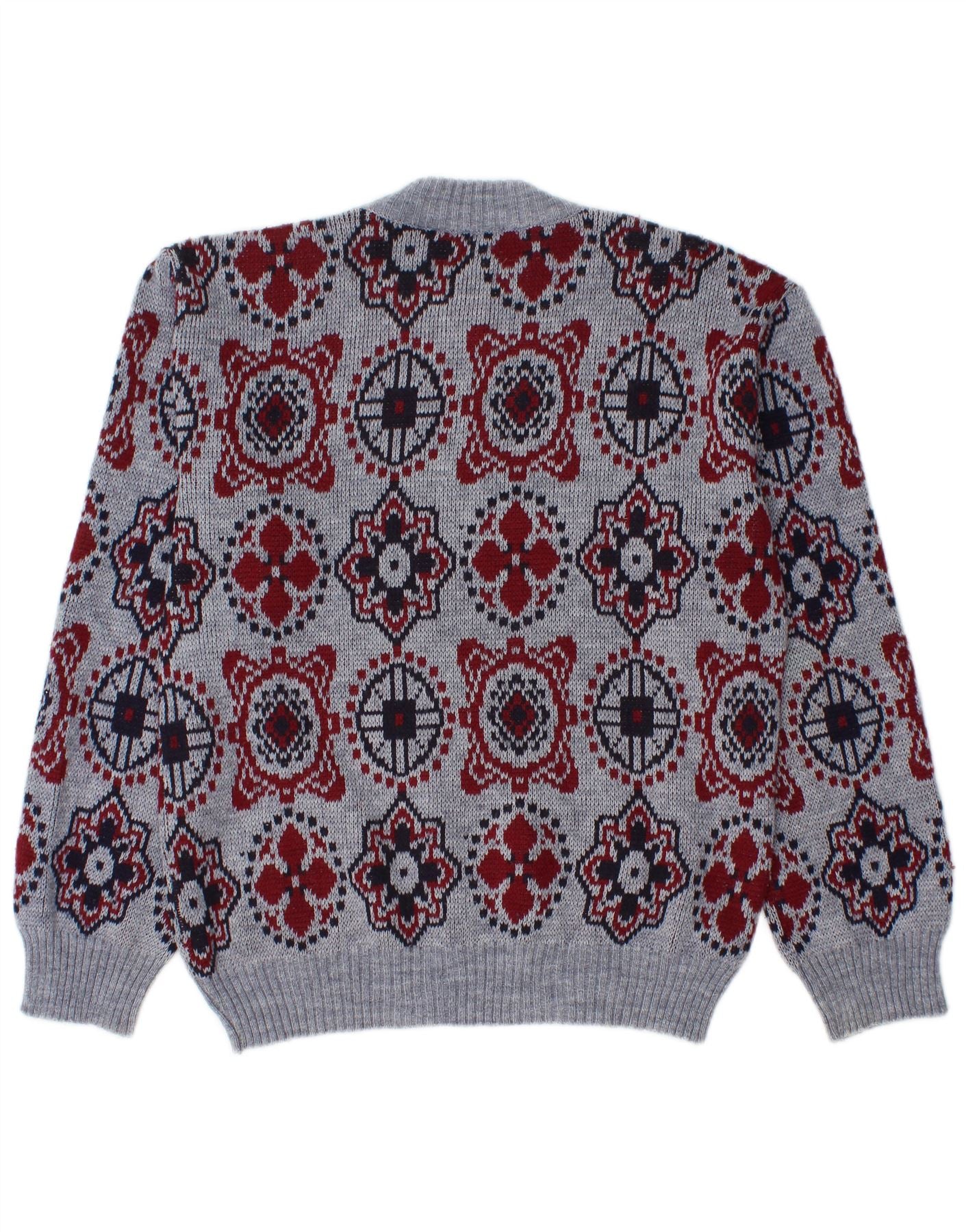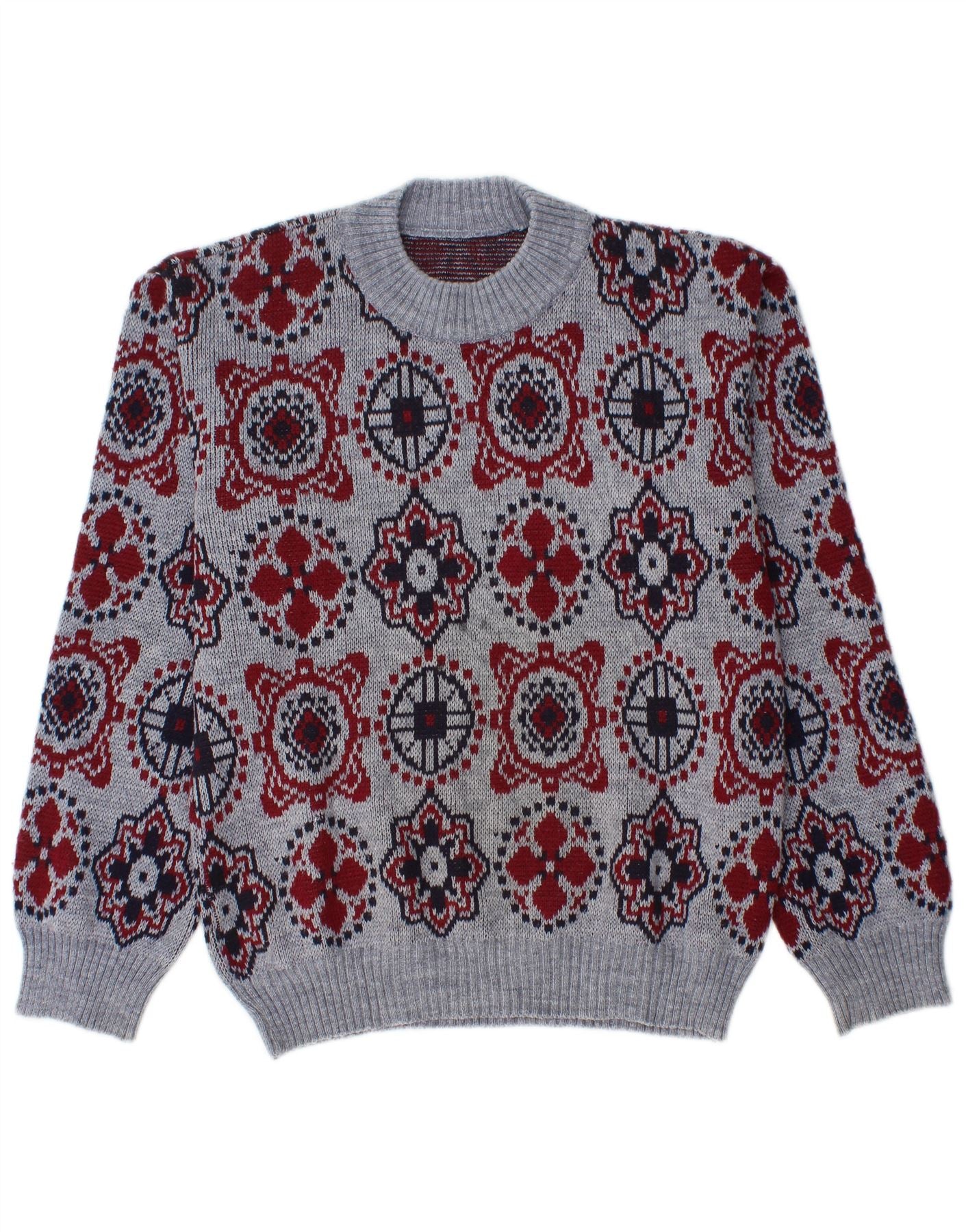 ВИНТАЖНЫЙ мужской джемпер с круглым вырезом, свитер среднего синего цвета с жаккардовым узором