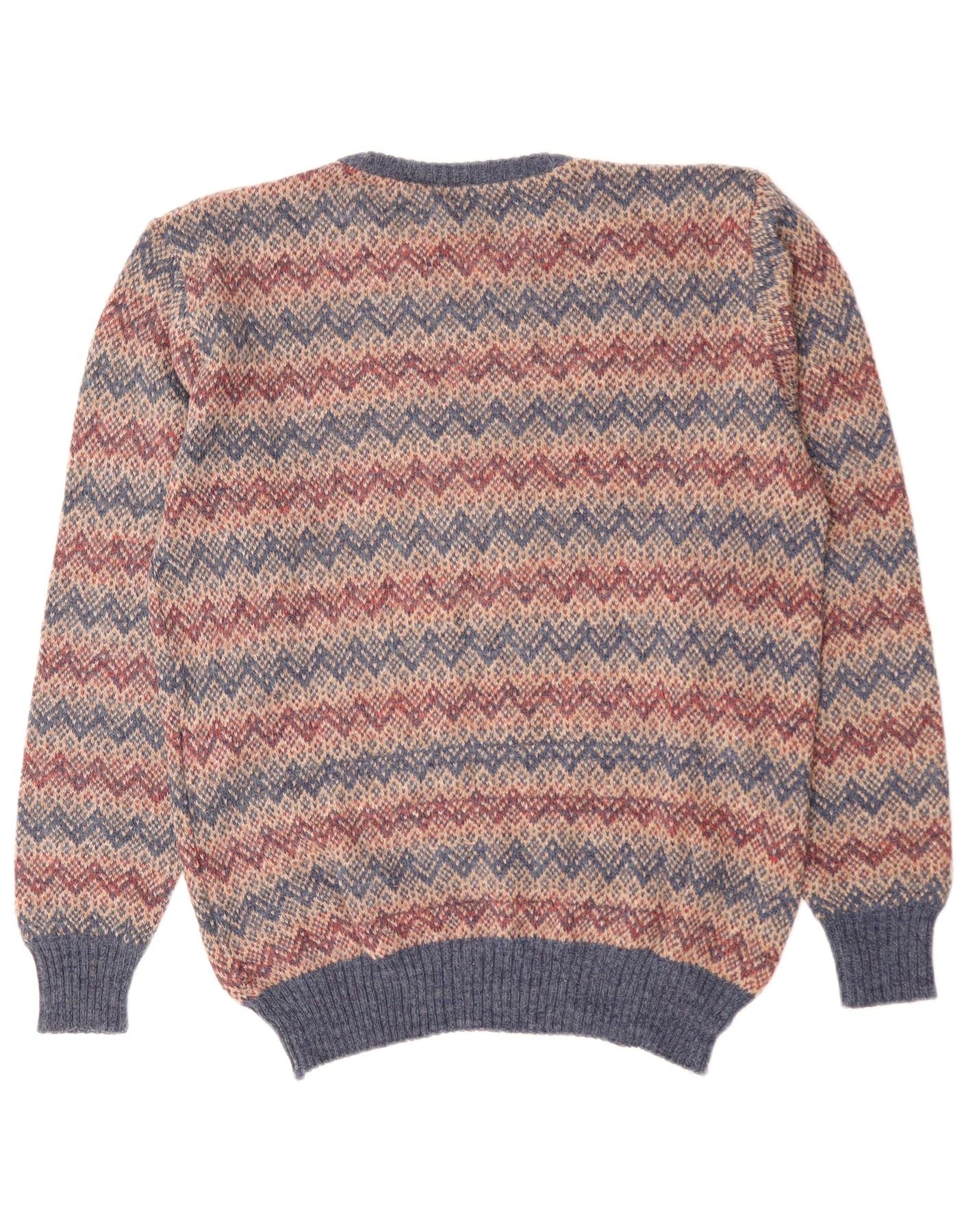 ВИНТАЖНЫЙ мужской свитер с круглым вырезом, средний коричневый акриловый шеврон с шевроном