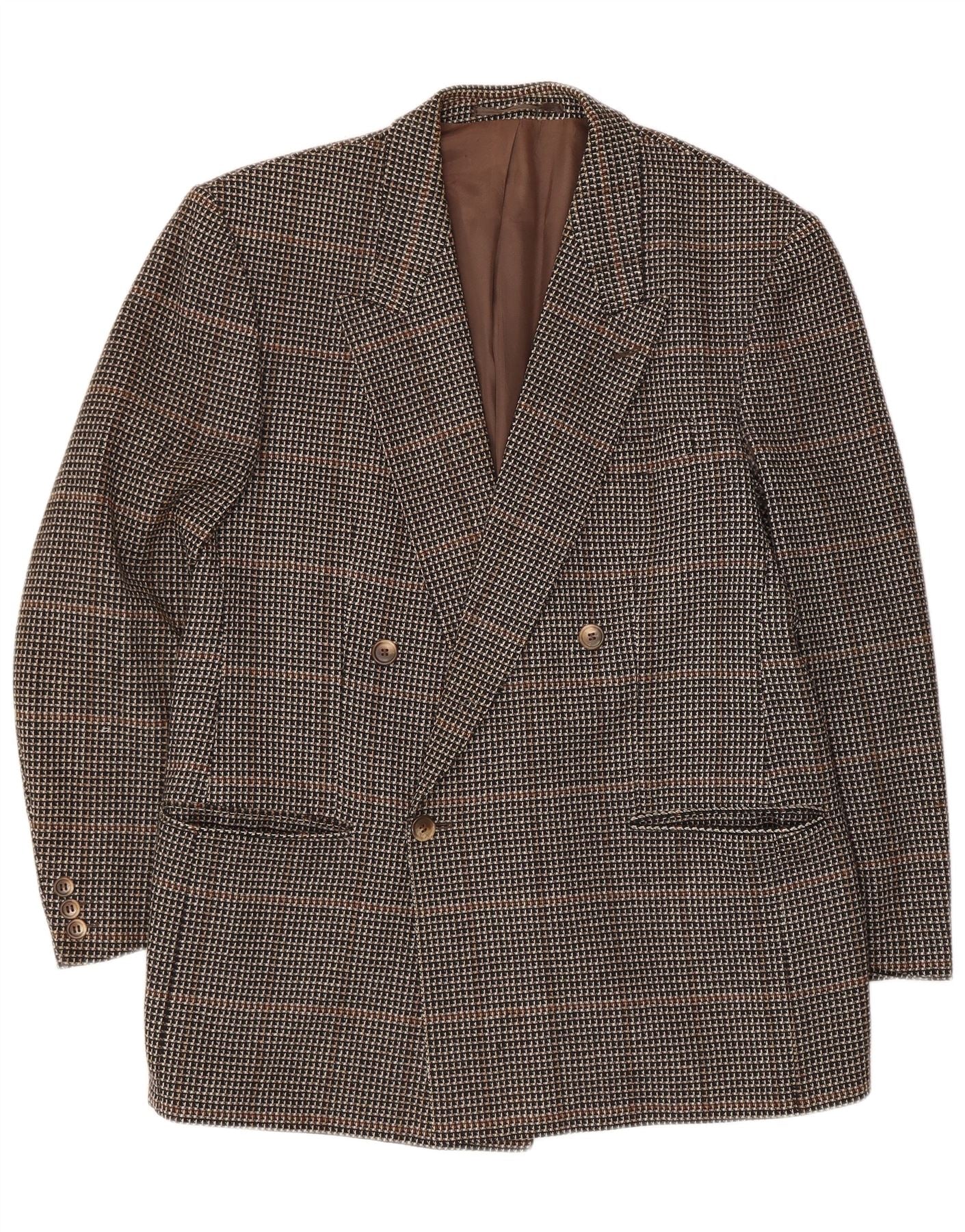 Винтажный мужской двубортный пиджак IT 50, большая коричневая клетка в клетку