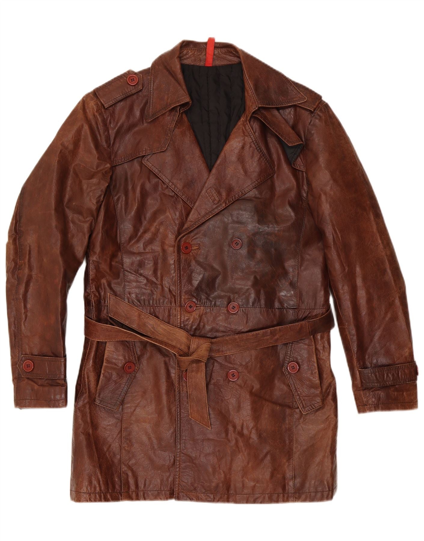 ВИНТАЖНОЕ Мужское двубортное кожаное пальто в стиле милитари IT 50, большое коричневое