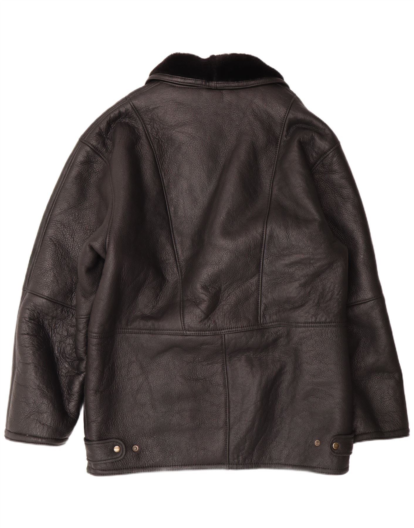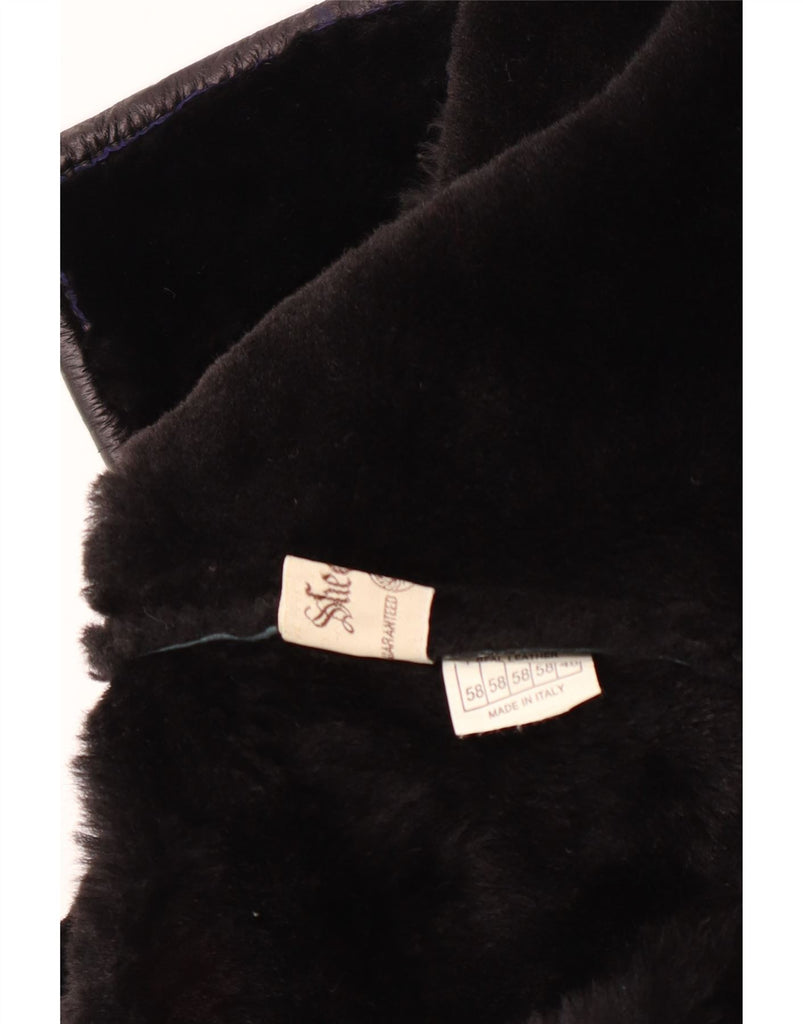 Мужская двубортная короткая куртка VINTAGE IT 58 4XL черная из овчины