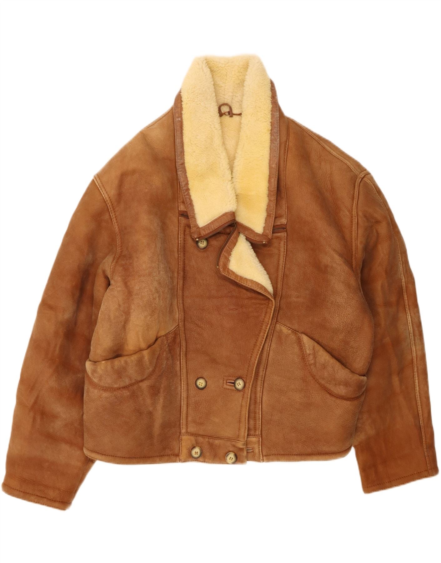 Винтажная мужская двубортная короткая куртка UK 20 2XL Коричневая короткая дубленка