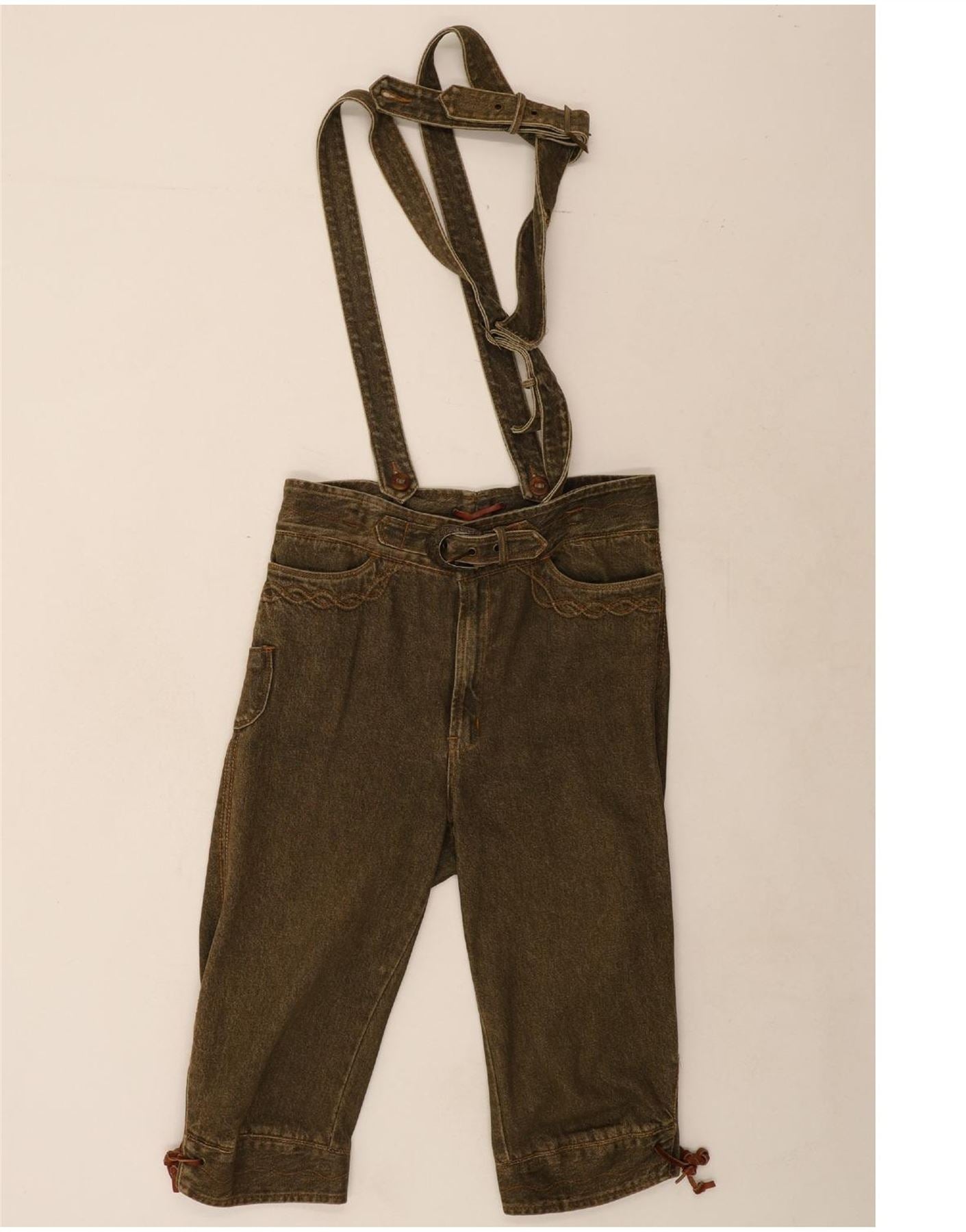 VINTAGE Mens Dungarees Capri Jeans IT 52 XL W34 L17 Khaki Cotton