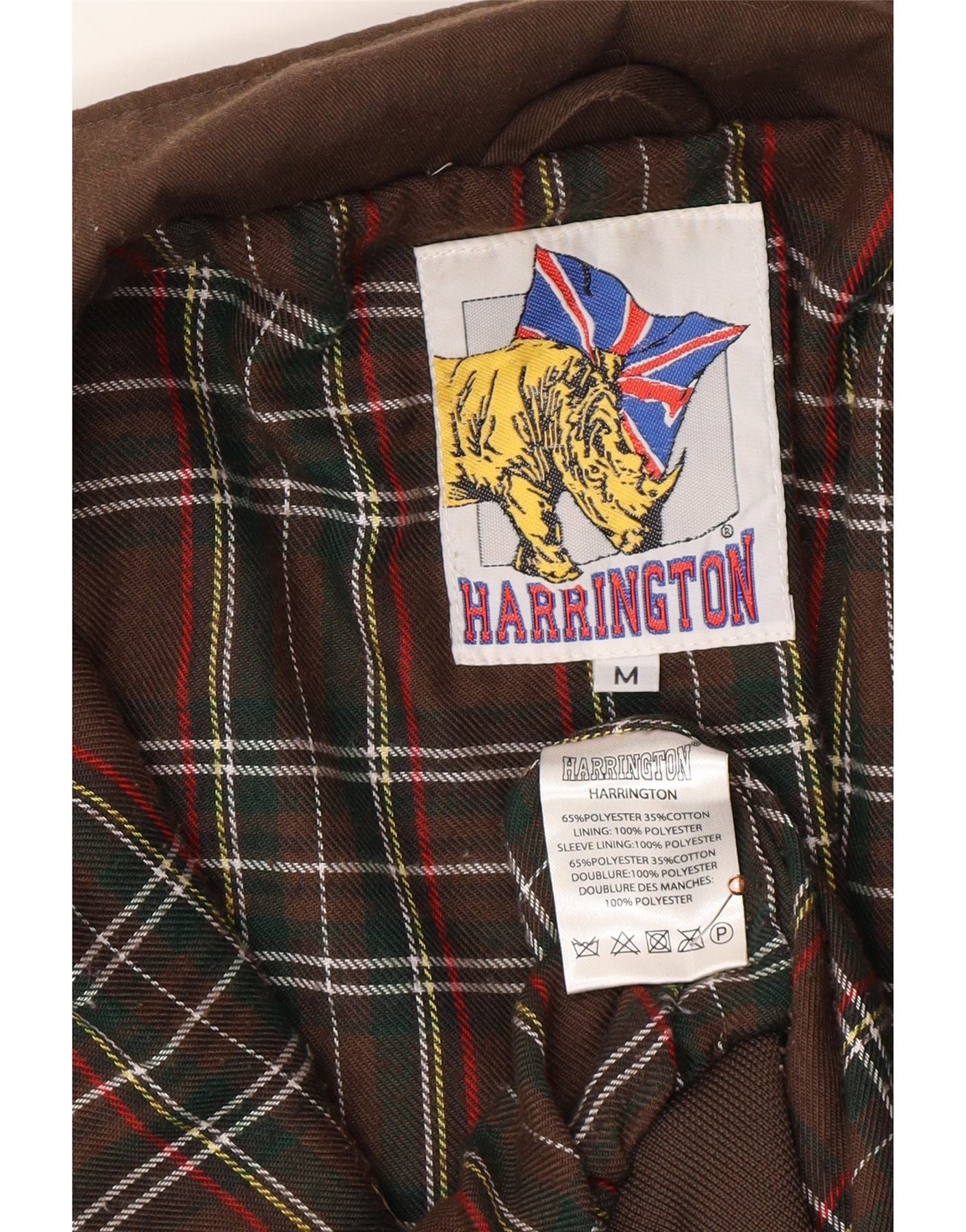 - AI Description: This Harrington mens Harrington Jacket is crafted from a durable polyester and cotton blend, offering a comfortable yet robust feel. It features a classic brown plaid pattern, adding a timeless appeal. The collared neckline and full zip closure define its iconic silhouette. Long sleeves and a regular fit ensure ease of movement. Practical pockets and subtle button accents complete the design, making it a versatile wardrobe staple.