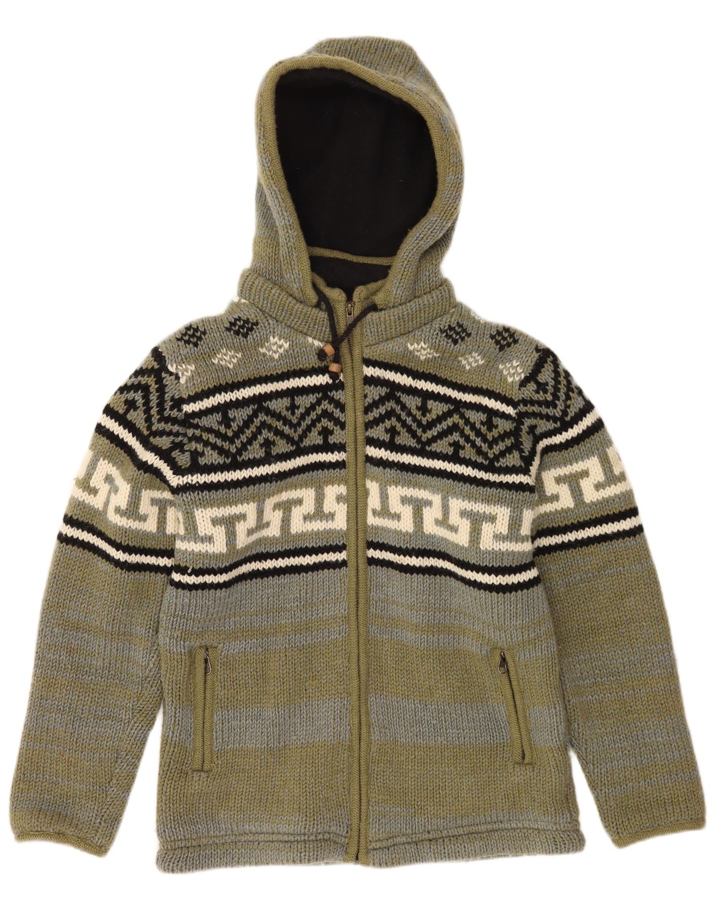 ВИНТАЖНЫЙ Мужской кардиган с капюшоном, свитер среднего цвета хаки, шерсть Fair Isle
