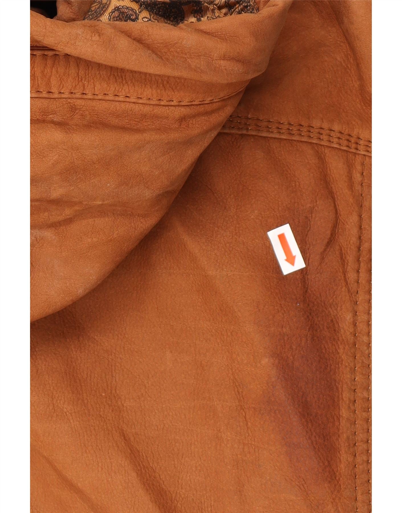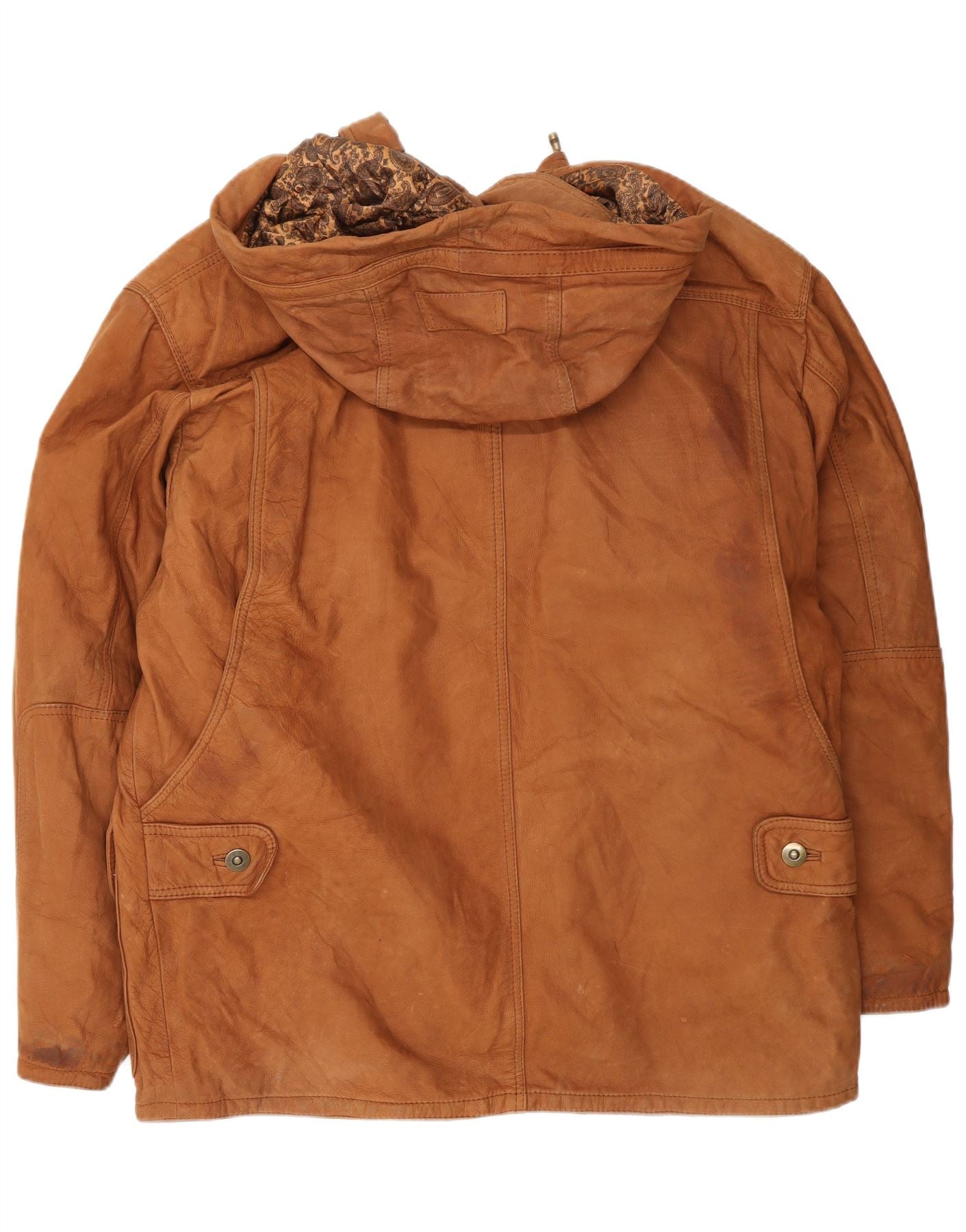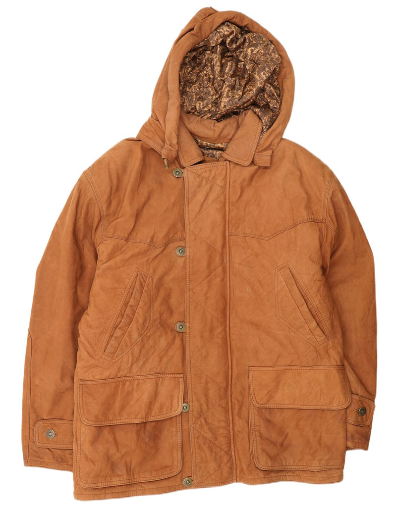 ВИНТАЖНАЯ Мужская кожаная куртка с капюшоном EU 54 2XL Коричневая кожа