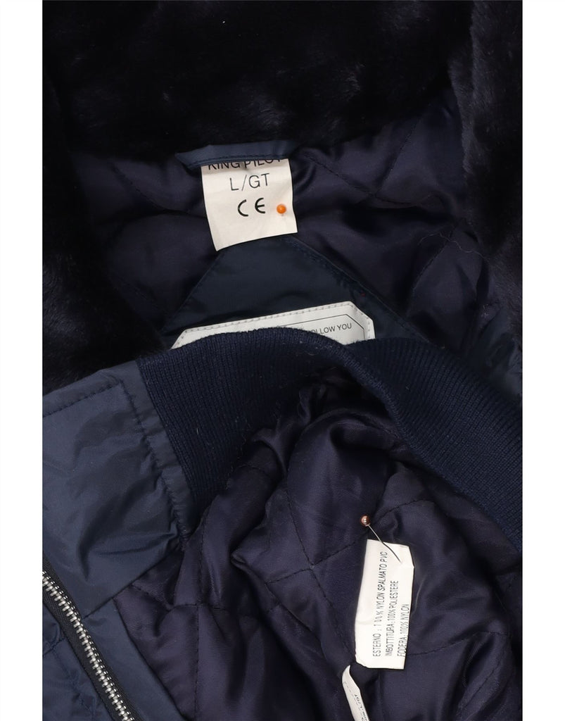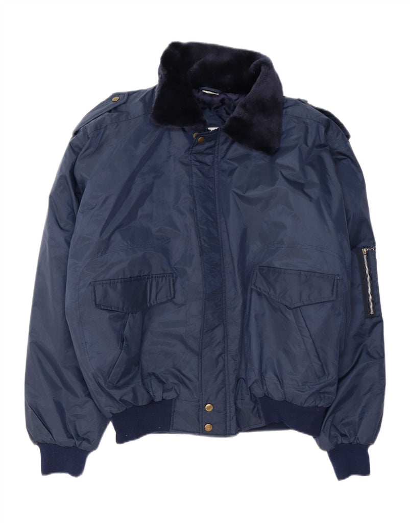 ВИНТАЖНАЯ мужская куртка-бомбер в стиле милитари с капюшоном, Великобритания, 40, большая, темно-синяя, нейлоновая