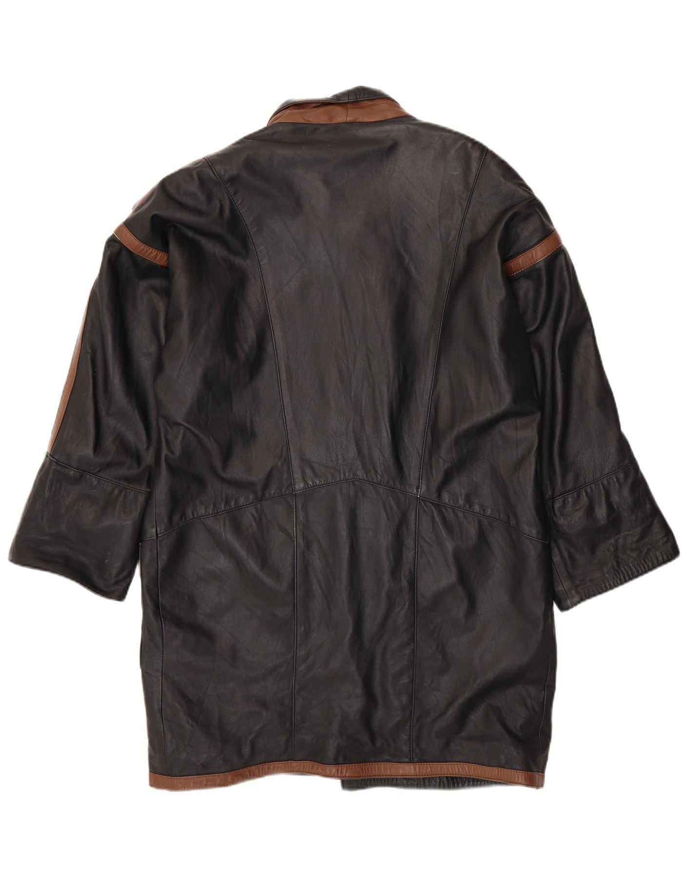 Мужское кожаное пальто VINTAGE UK 40, большое черное с цветными блоками