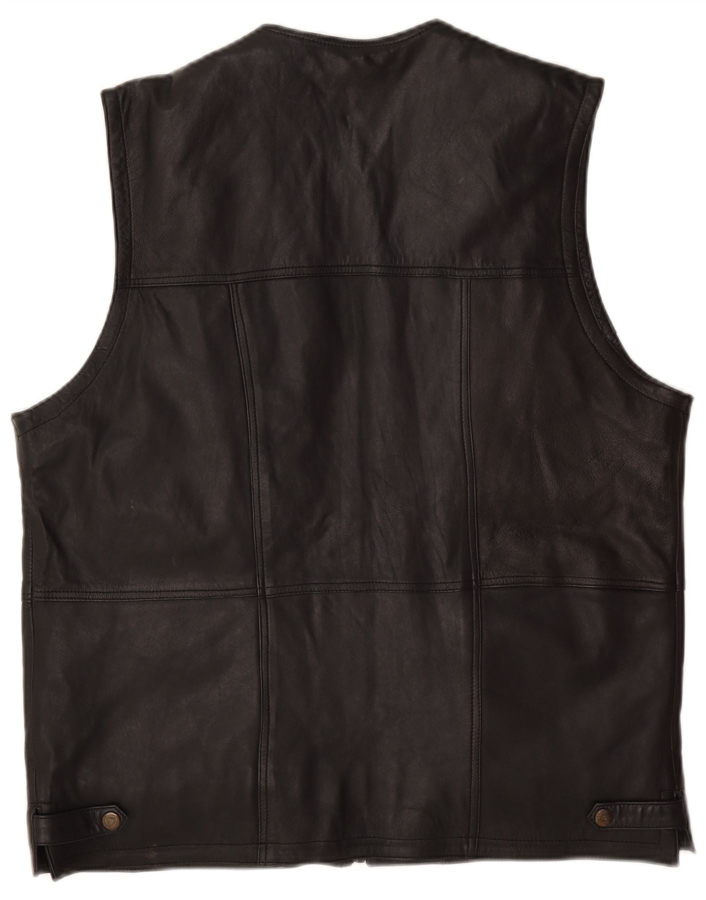 - Описание ИИ: Этот винтажный мужской жилет изготовлен из мягкой черной натуральной кожи с прочной, но изысканной текстурой. Он имеет классический V-образный вырез и застежку-молнию для надежной посадки. Модель без рукавов обеспечивает легкость движений. Множество карманов на молнии и клапанах обеспечивают практичное хранение и добавляют байкерского стиля. Регулярная посадка обеспечивает удобство ношения, что делает ее универсальной многослойной вещью.