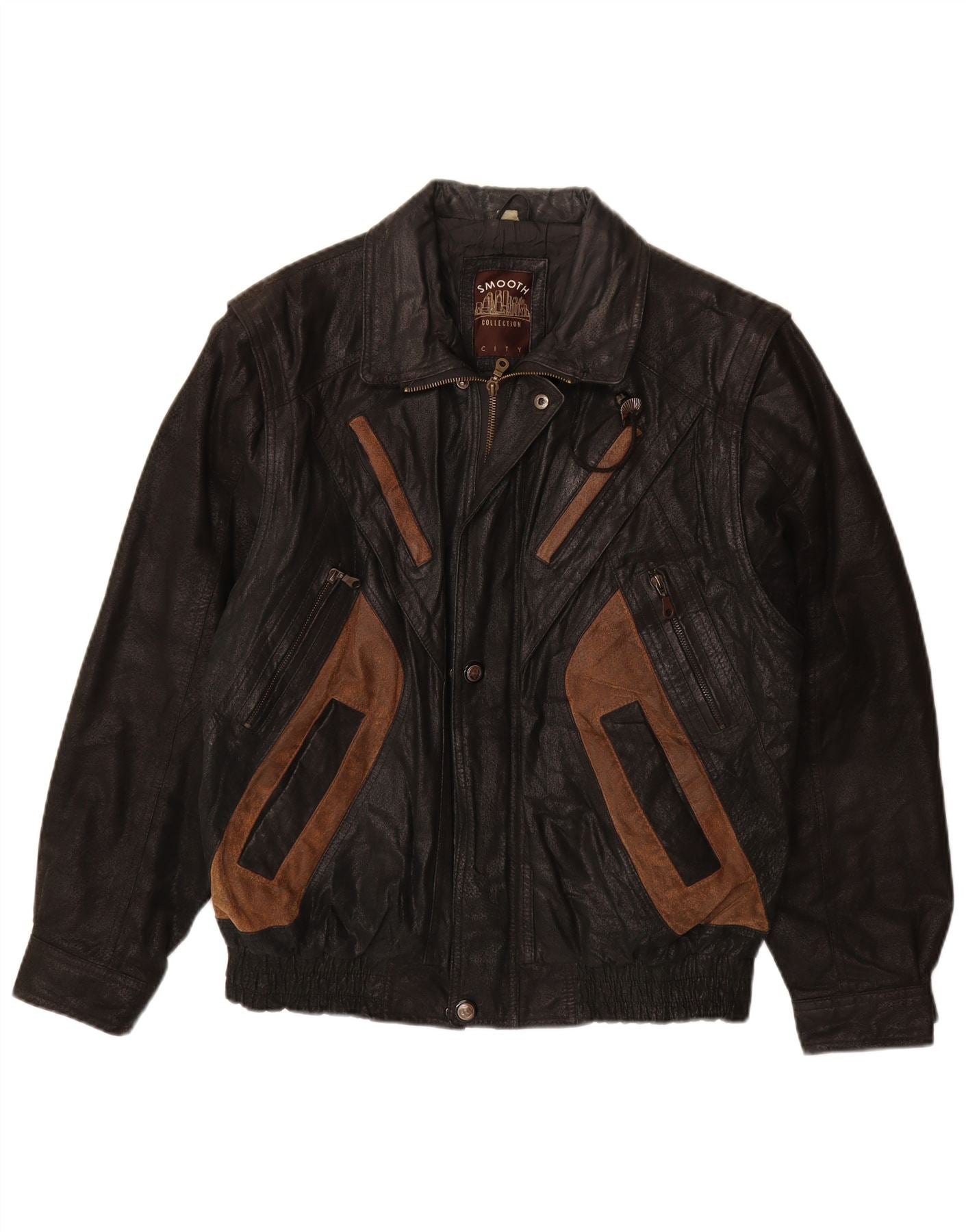 Мужская кожаная куртка VINTAGE UK 40, большая черная кожа с цветными блоками