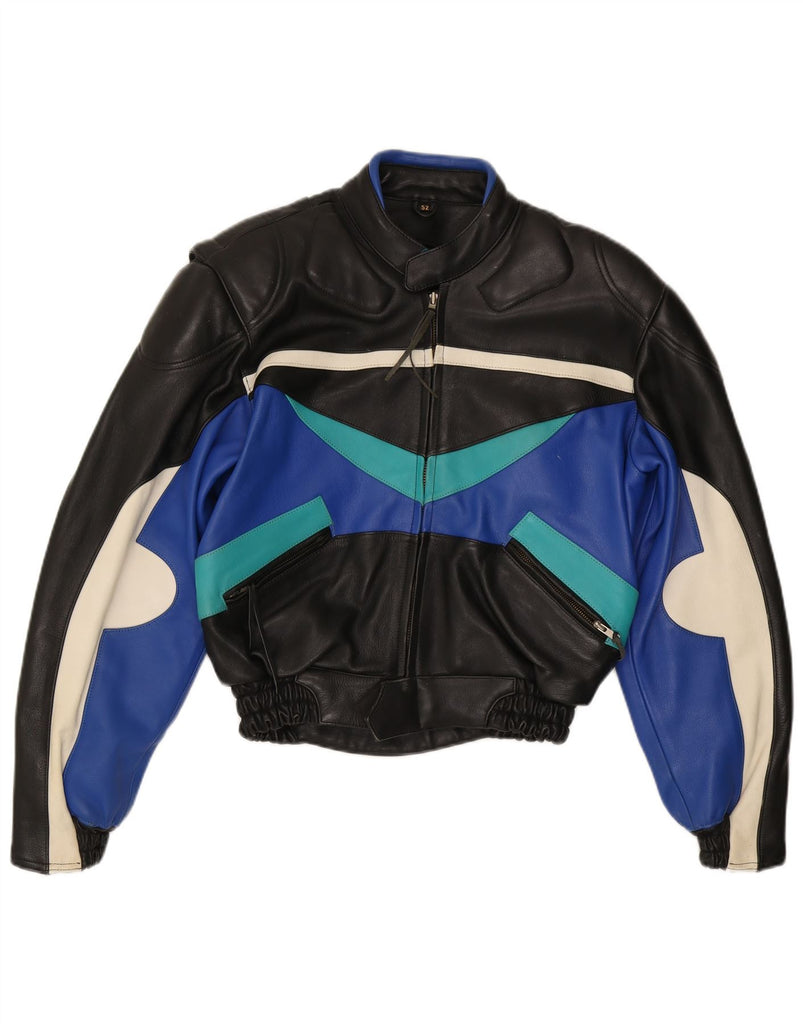 Мужская кожаная куртка-гонщик VINTAGE IT 52 XL, черная кожа с цветными блоками