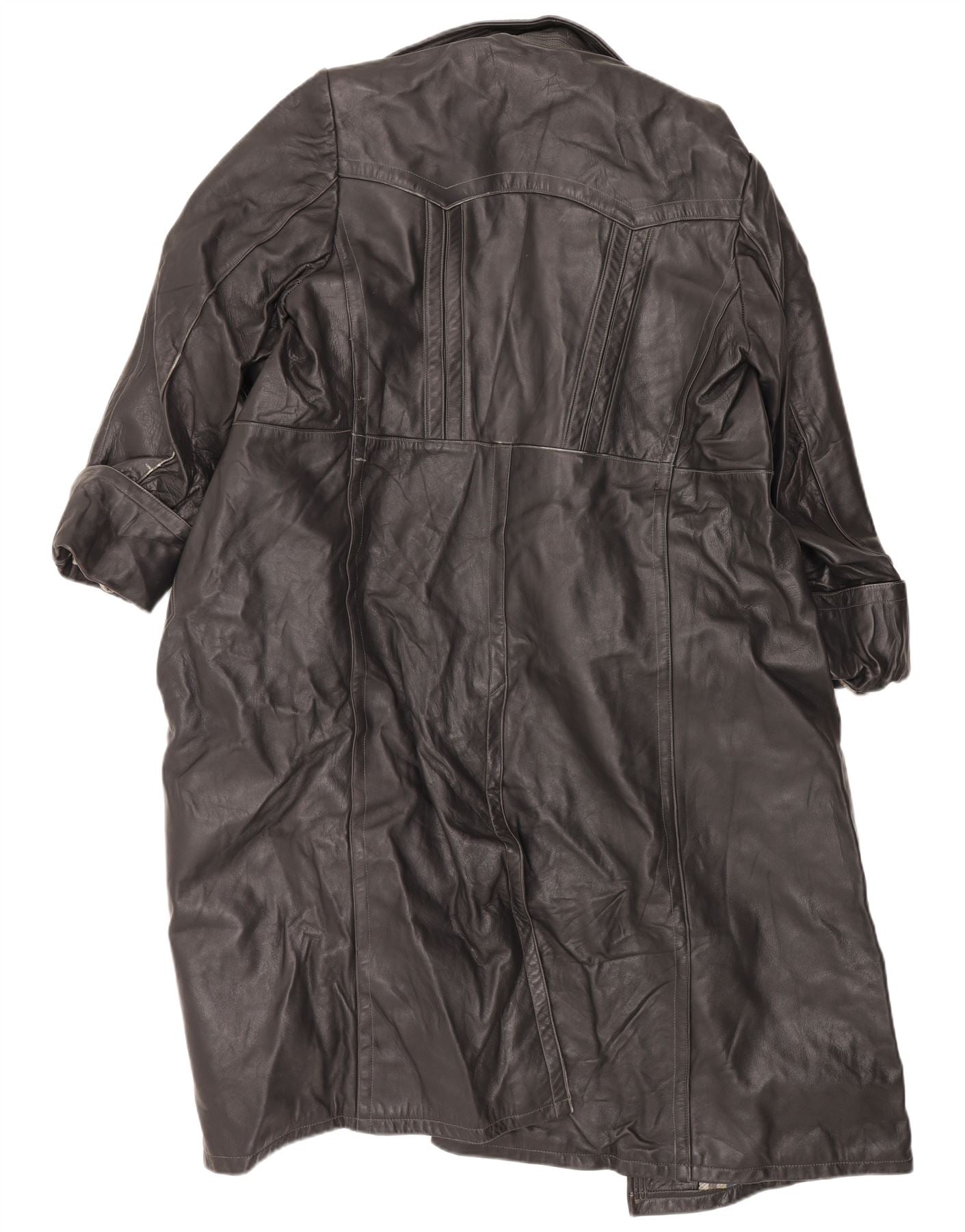 Мужской кожаный тренч VINTAGE UK 38, средний черный кожаный