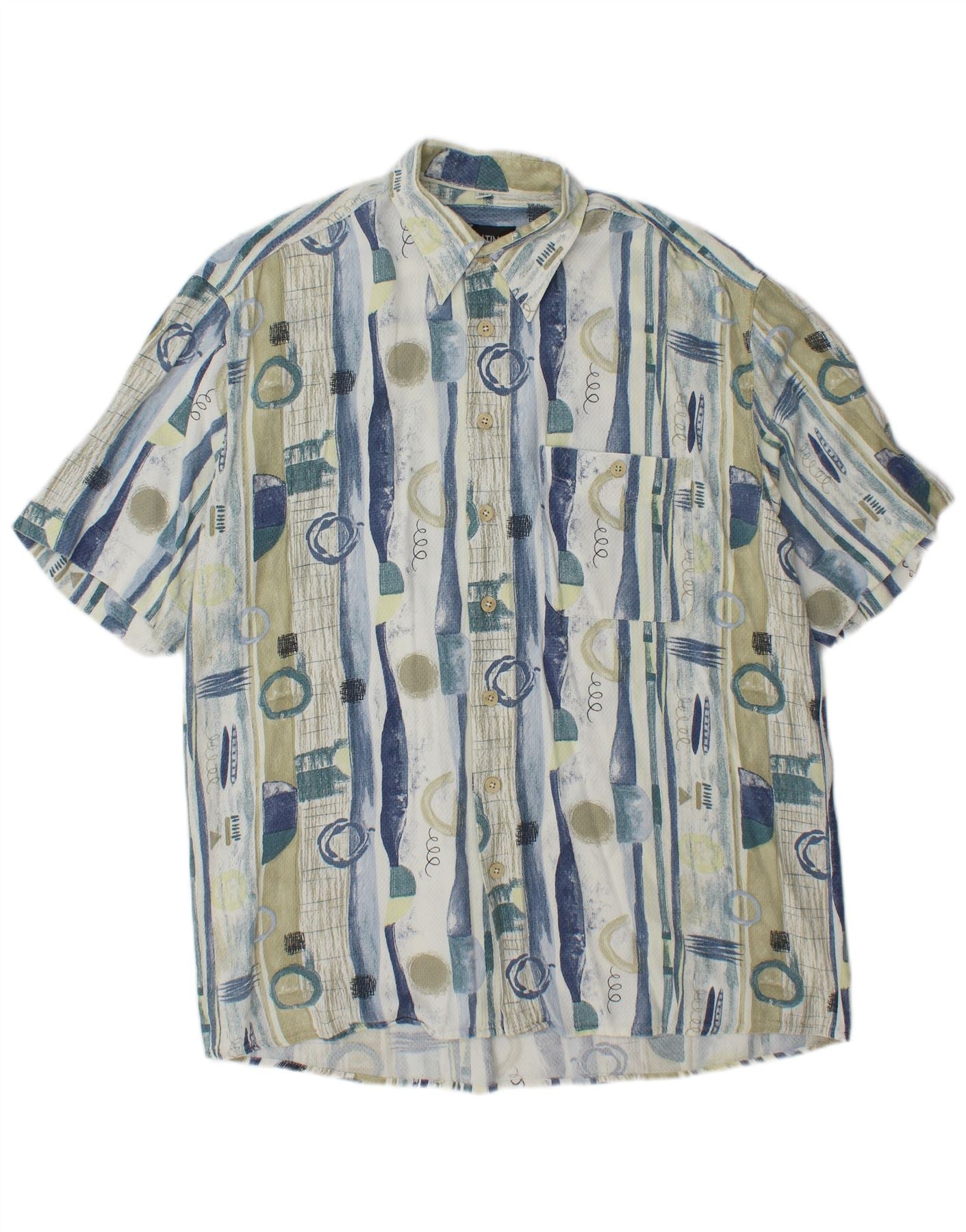 VINTAGE Мужская длинная рубашка с абстрактным узором, размер 41, большая синяя