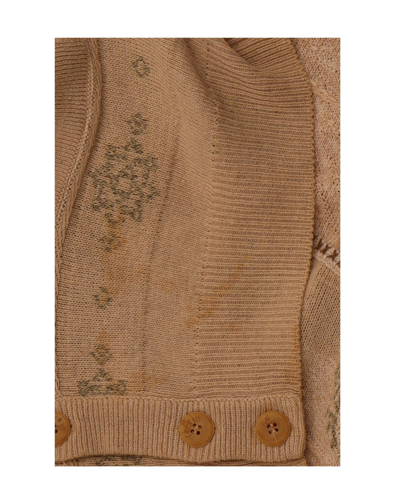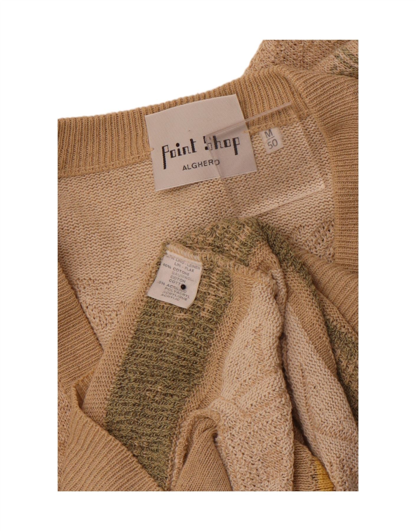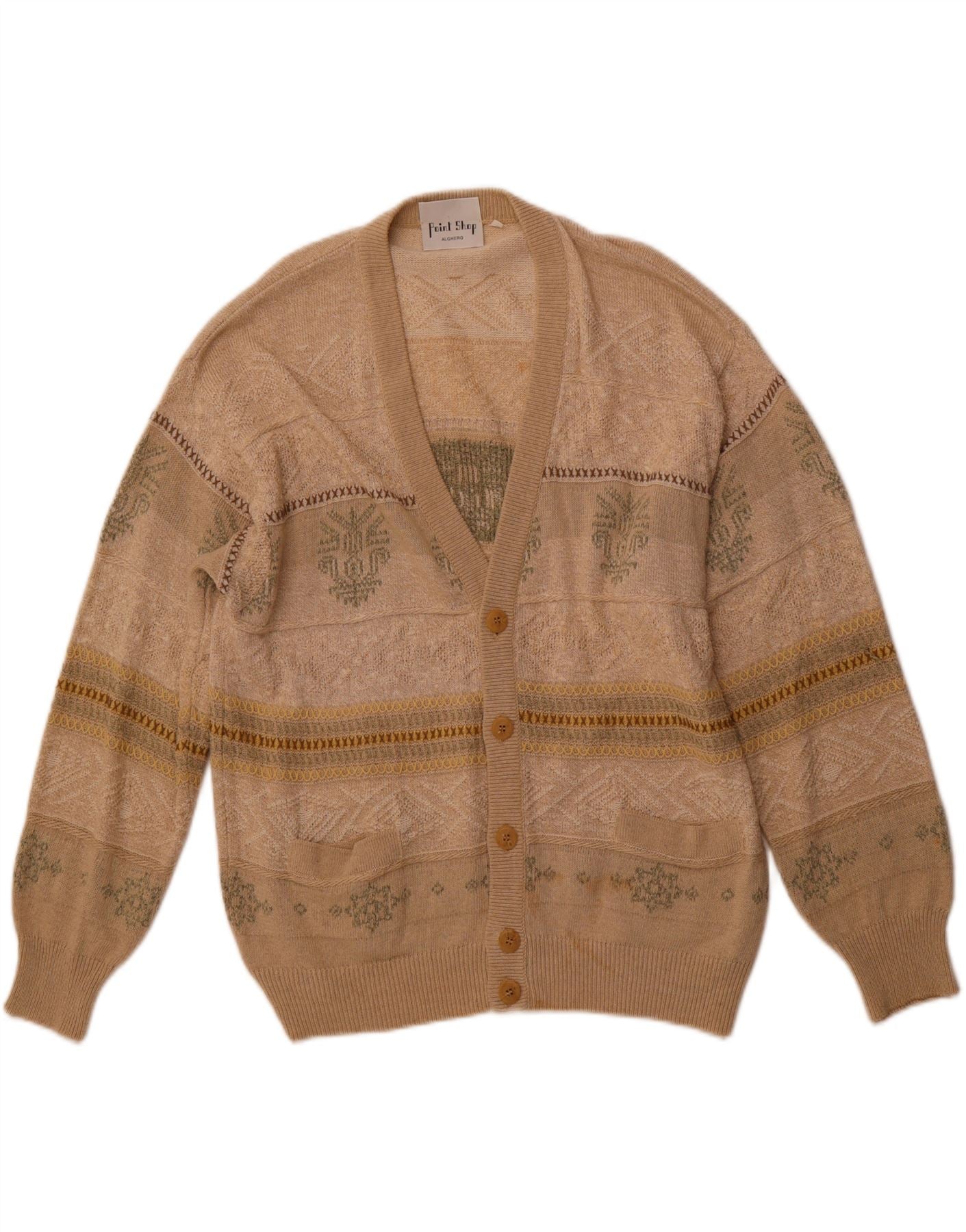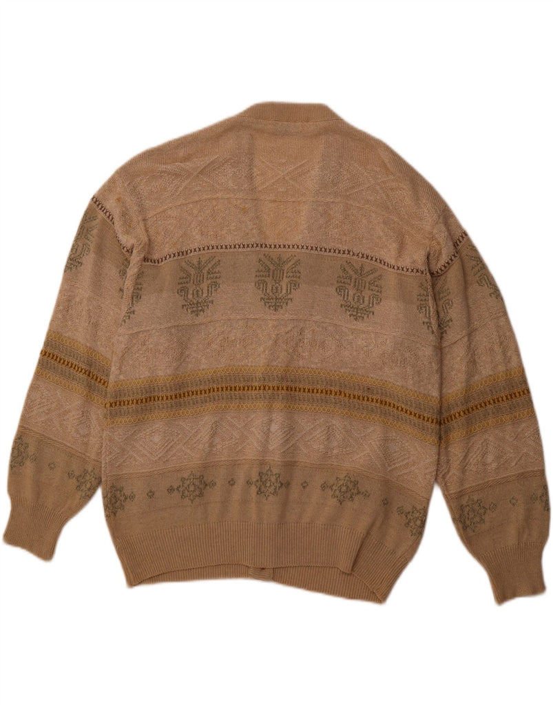 VINTAGE Мужской свитер-кардиган свободного кроя IT 50 Средний бежевый лен Fair Isle