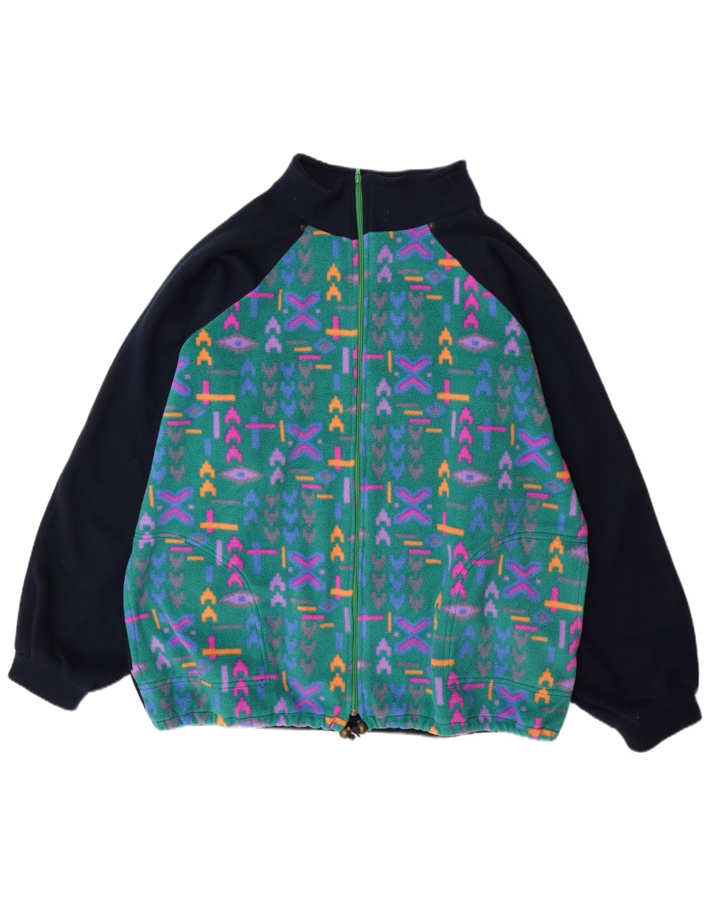 Мужская флисовая куртка свободного покроя VINTAGE UK 42 XL, зеленый полиэстер с геометрическим рисунком