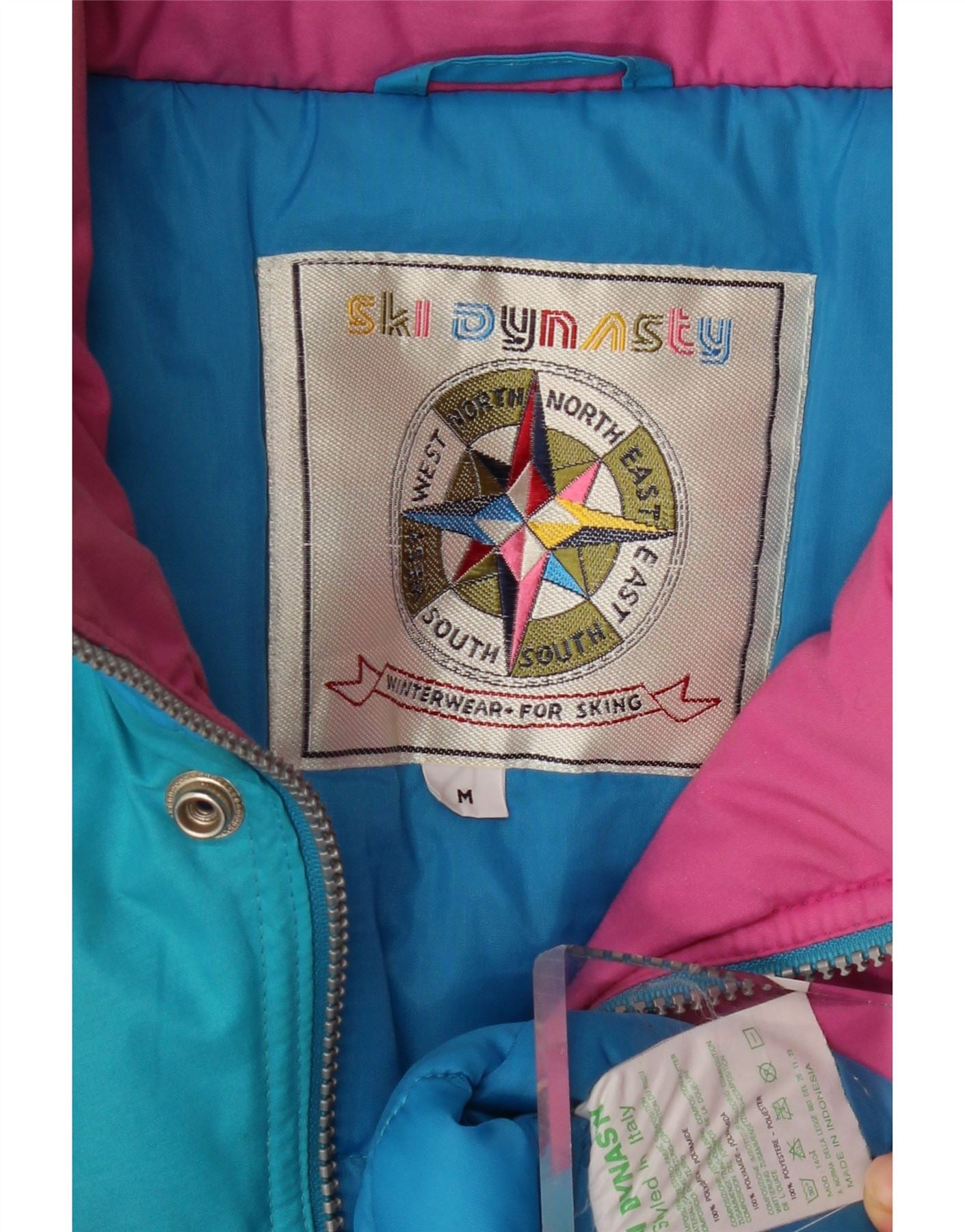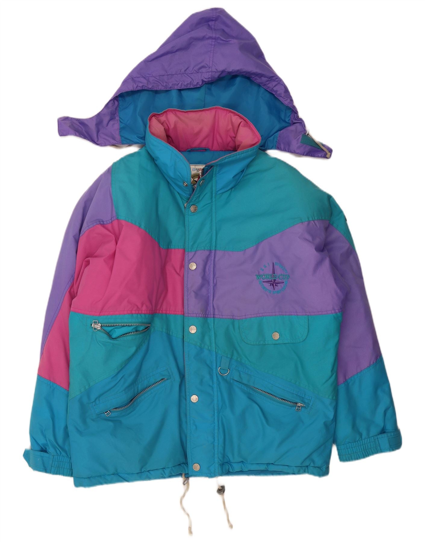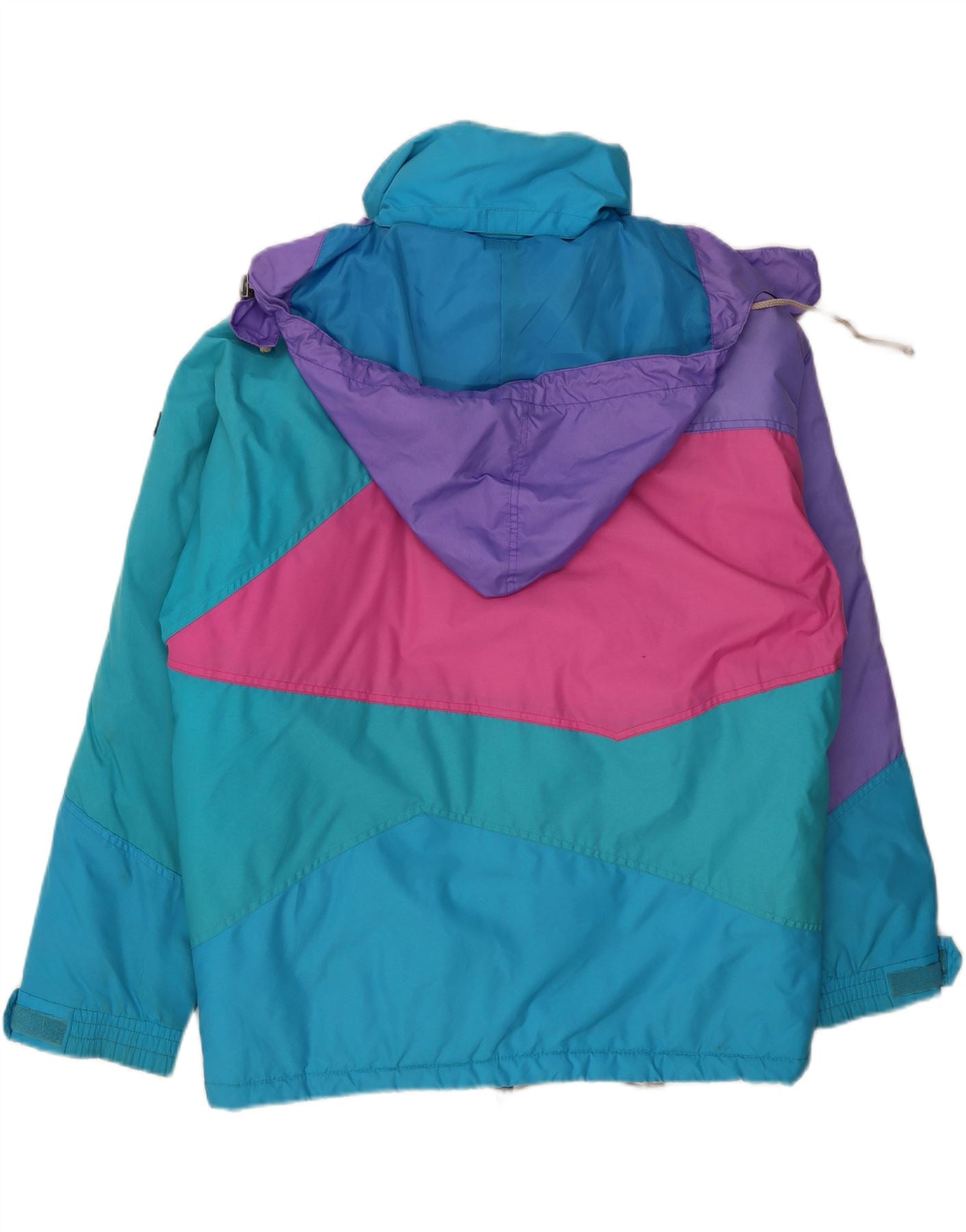 Мужская лыжная куртка свободного покроя с капюшоном VINTAGE, Великобритания 38, средний синий цвет с цветными блоками