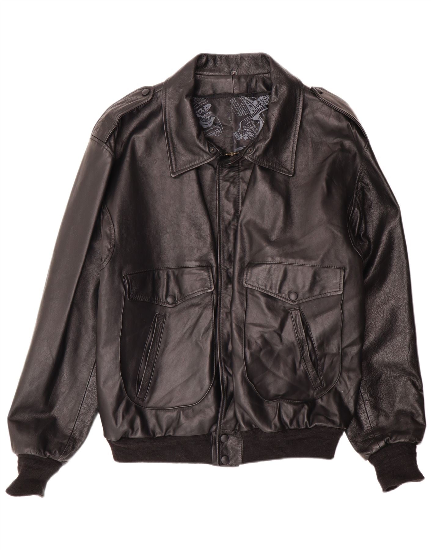 Винтажная мужская кожаная куртка-бомбер в стиле милитари, Великобритания 42 XL, черная