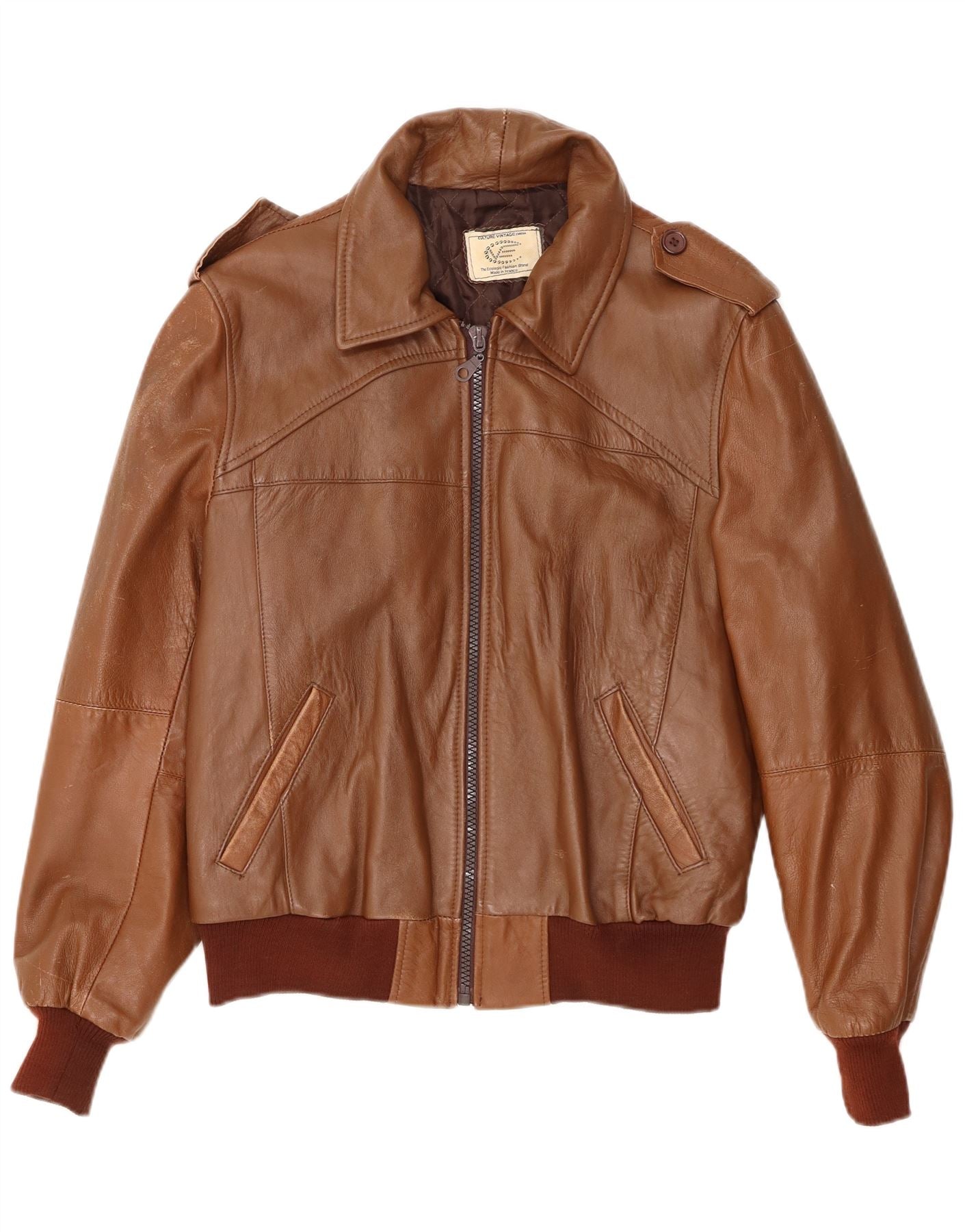 Home > Винтажные кожаные куртки > Винтажные коричневые кожаные куртки > Мужская кожаная куртка в стиле милитари VINTAGE UK 40, большая коричневая кожаная куртка