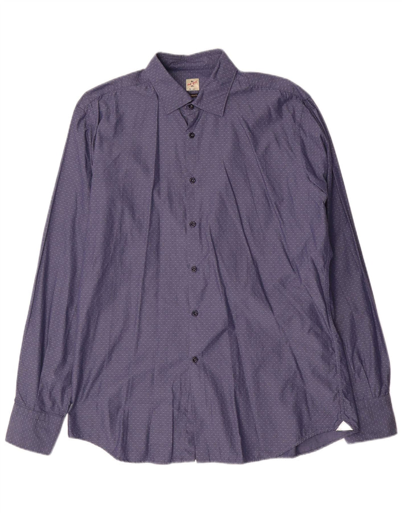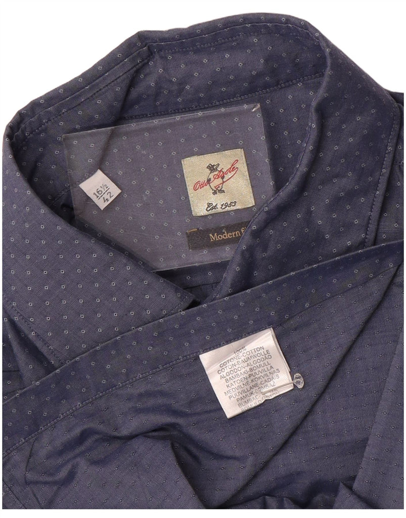 VINTAGE Мужская рубашка современного кроя, размер 16, 1/2, большая темно-синяя хлопковая пятнистая рубашка