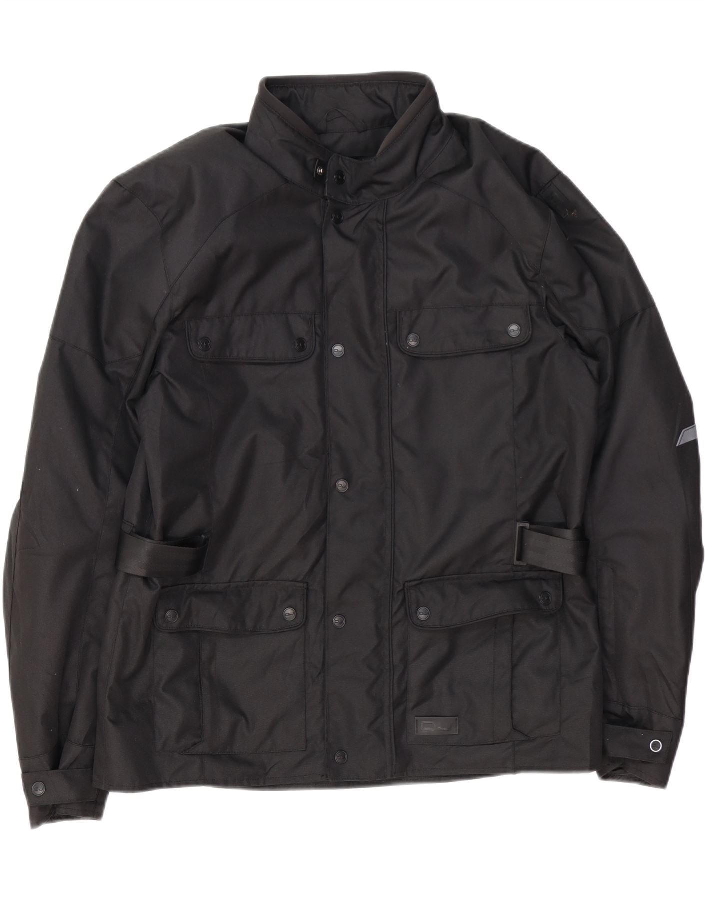 - Описание ИИ: Мужская байкерская куртка OJ изготовлена из прочной черной смеси полиэстера и полиамида, создающей ощущение прочного вощеного хлопка. Имеет воротник с воротником и длинные рукава. Регулярная посадка обеспечивает комфорт и легкость движений. Спереди застегивается молния, дополненная акцентами на пуговицах. Несколько карманов обеспечивают практичное хранение. Светоотражающие детали улучшают видимость, а регулируемая талия обеспечивает индивидуальную посадку, идеально подходящую для езды на мотоцикле.