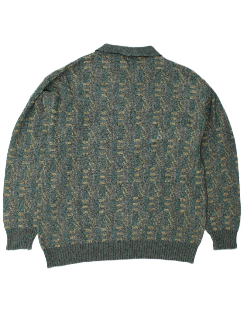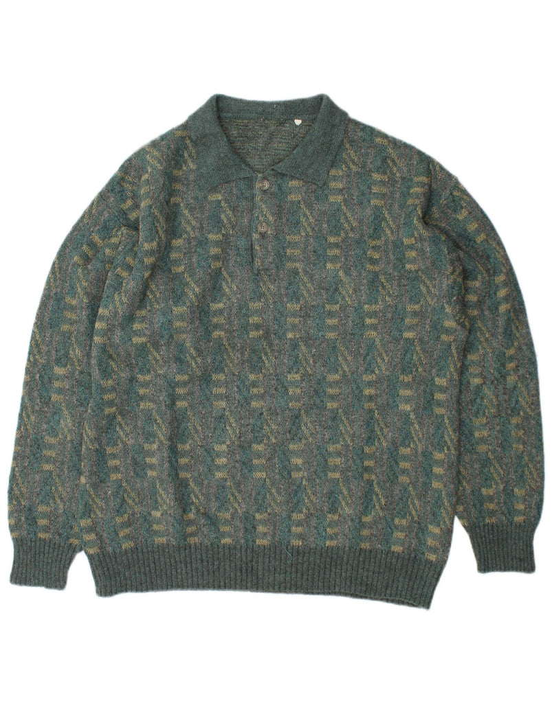 ВИНТАЖНЫЙ мужской джемпер с воротником-поло, свитер из мохера в большую зеленую полоску