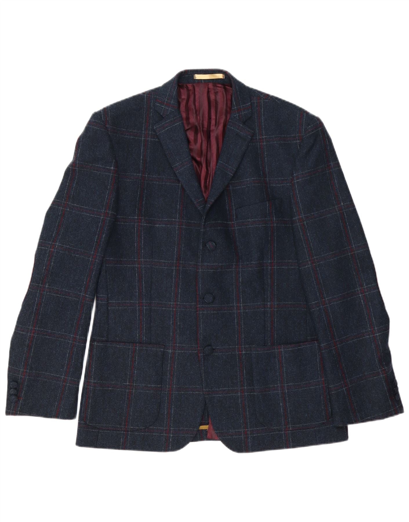 ВИНТАЖНЫЙ мужской пиджак стандартного кроя с 3 пуговицами, Великобритания 42 XL, темно-синий в клетку