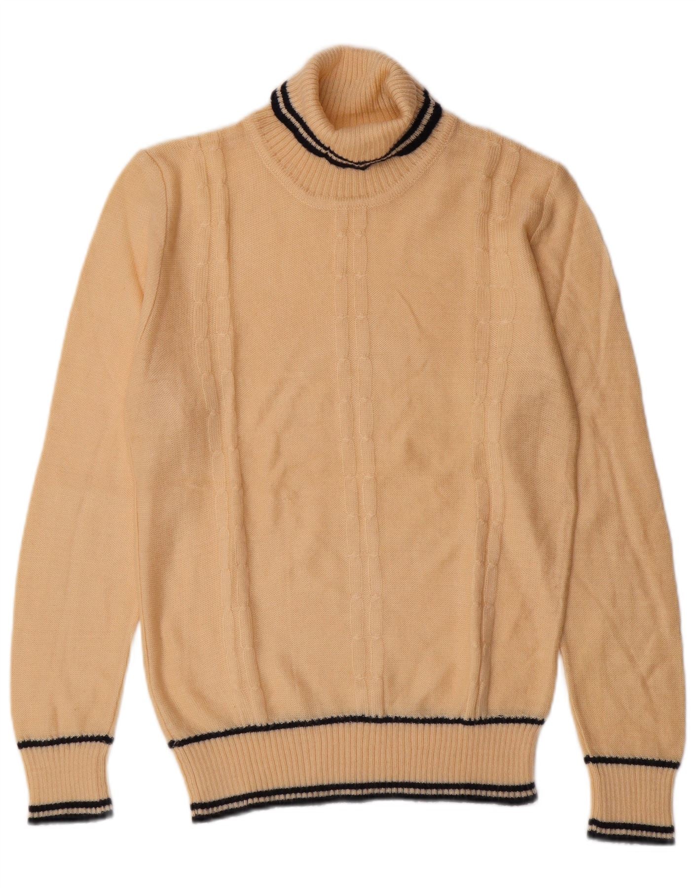 ВИНТАЖНЫЙ мужской джемпер с высоким воротником, маленький классический бежевый полосатый свитер
