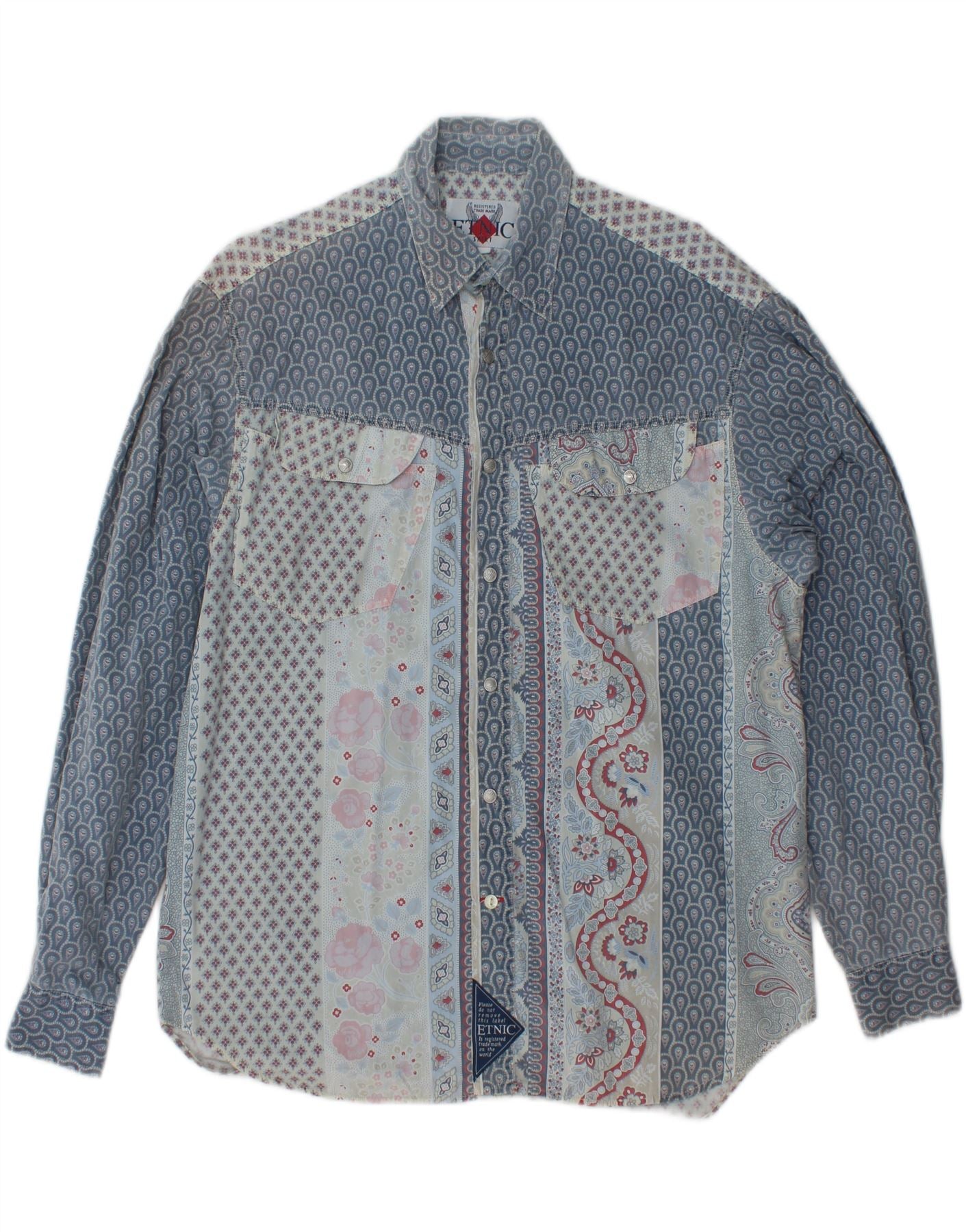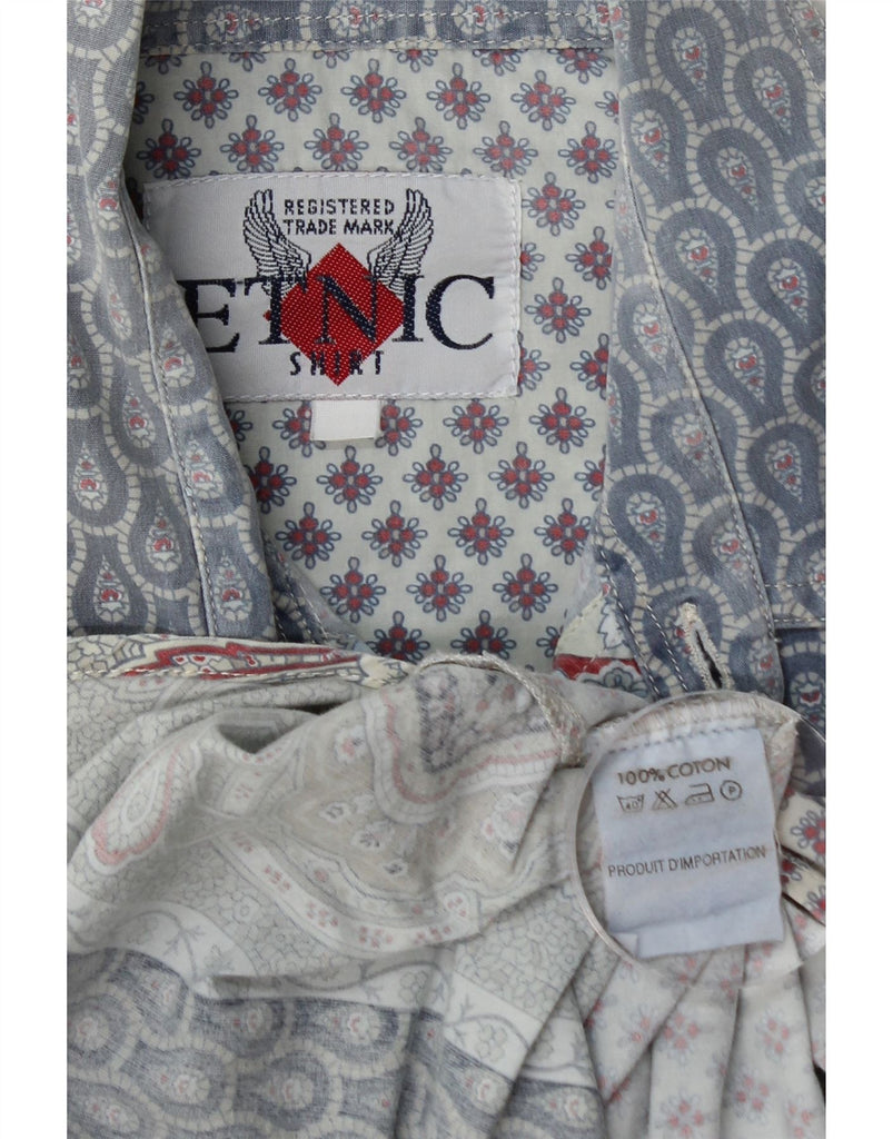 VINTAGE Мужская рубашка из хлопка среднего синего цвета с цветочным принтом